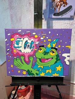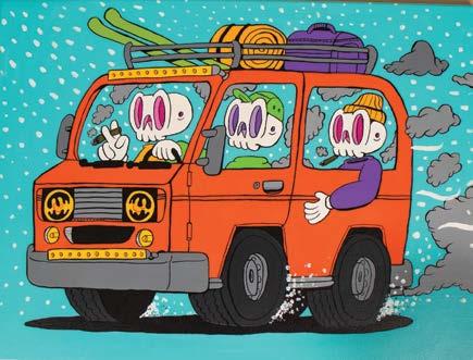 There’s always a lot of color or nature in the scenes he creates, along with his signature Skully Vibes character.