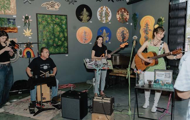 As if giant murals and a drive-thru weren’t enough reasons to stop by, the store also hosts community events and acoustic musical performances, and it houses an art gallery. AJ Culp, engagement manager, says the gallery rotates through four different artists every three months, offering them a space without taking any percentage from the sale of their work. Culp says, so far, the dispensary has worked with over 80 painters, ceramists, glassblowers, illustrators and artists of many other disciplines to show people that anything can be Cannabis art if the artist connects to their work through the plant.