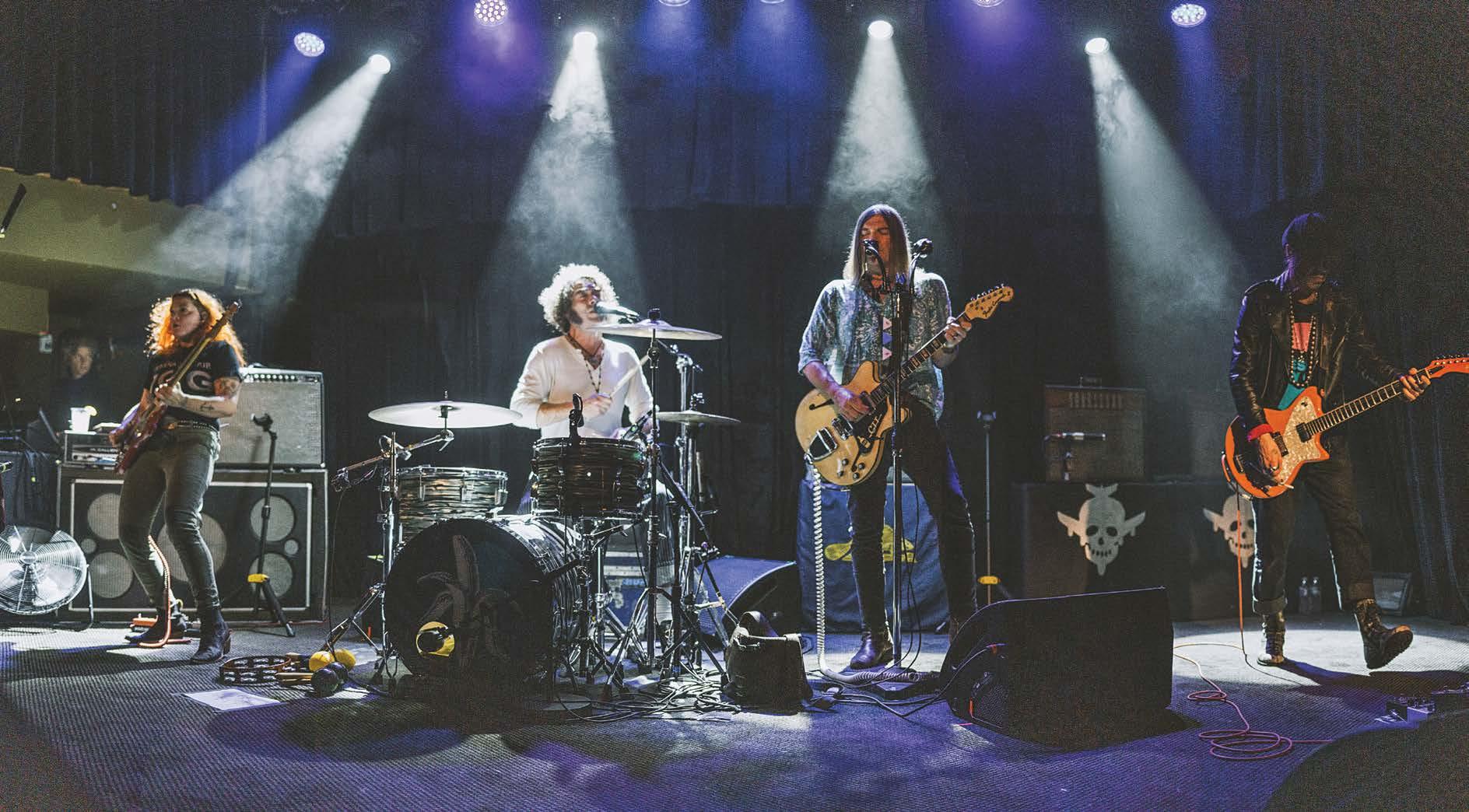 It’s dim and bustling in the mid-level bar at the McMenamins Elks Temple in Tacoma, Wash., on a cold December day. A sold-out crowd begins to swell outside for ’90s psychedelic and shoegaze rock darlings The Dandy Warhols, who are celebrating the 30th anniversary of the formation of their band.
