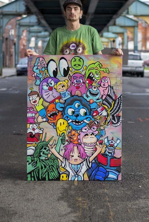 HE’S COLLABORATED with just about every big-name glass artist out there, and his collection of art and merchandise has been the focus of gallery shows nationwide. Raised in tattoo shops where his dad was working, Trevy Metal says he’s been largely inspired by things that were in the background during his childhood. This meant a diet of Heavy Metal magazines, Ralph Bakshi cartoons and the world of illustrators like Peter Max and Mark Bode.