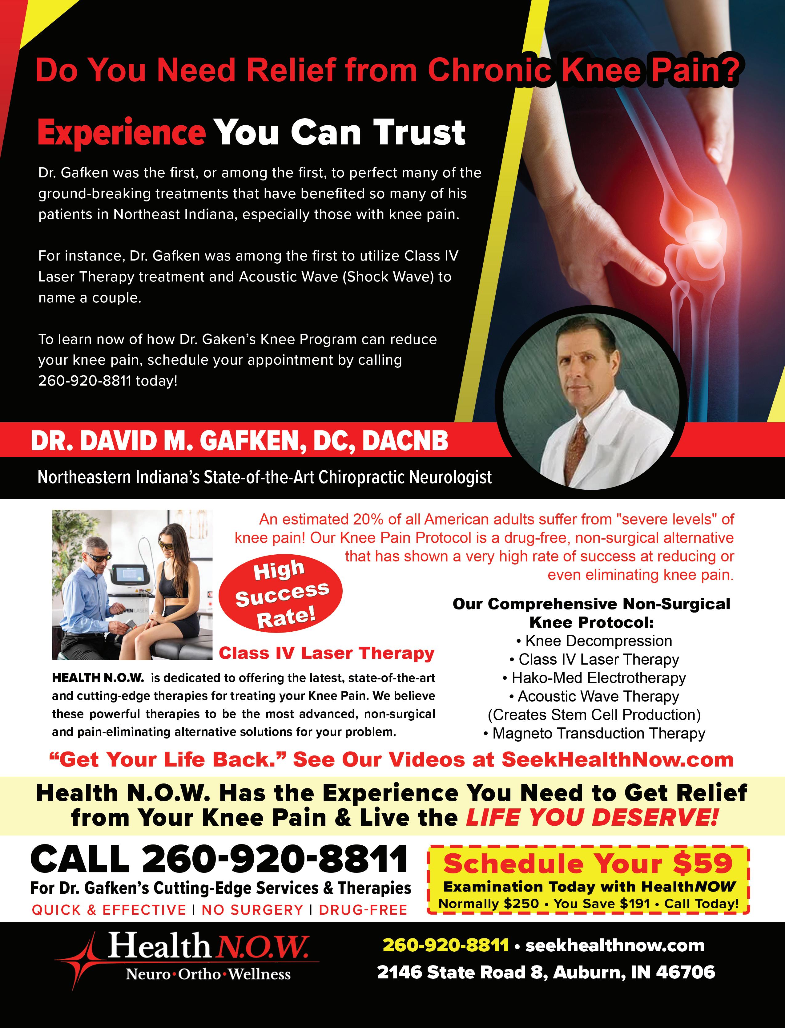 Dr. David Gafken has been a leader in bringing new technologies to this region for the benefit of his patients. His decades of experience enable him to treat certain conditions more effectively than ever before without surgery or medicine at Health N.O.W., in Auburn.