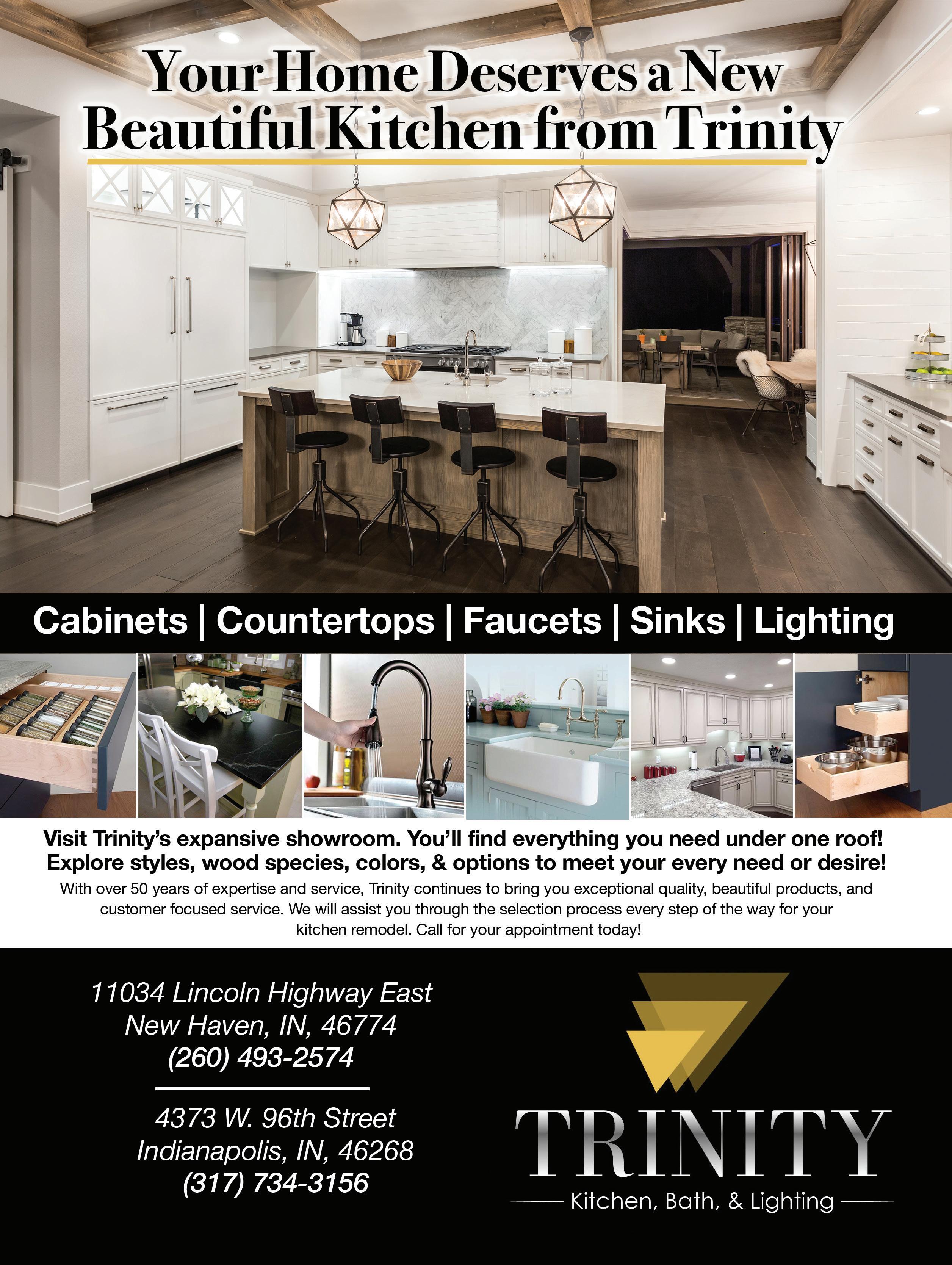 To work with a designer, call (260) 493-2574 or visit trinityhomecenter.com.