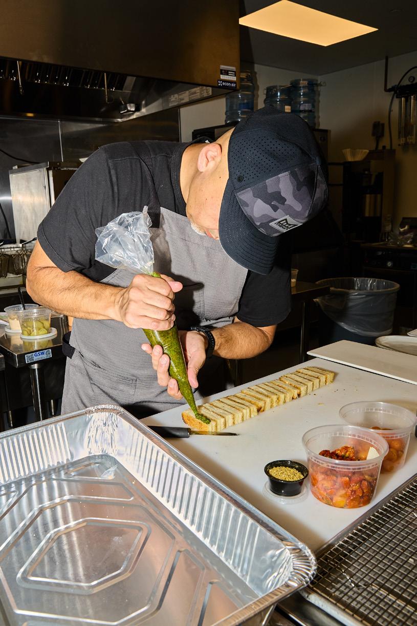 mozzarella bar: fresh mozzarella w/ extra virgin olive oil & sea salt, eggplant caponata basil pesto genovese, mixed olive tapenade, marinated artichokes, marinated tomato, seasonal fruit, fettunta