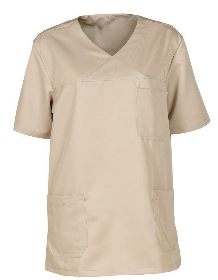 Smock with rounded overlapping neckline designed for both men and women. The cut is straight and the smock offers a pleasant length at the back. The shirt is designed with ribbing in the sides for extra flexibility.