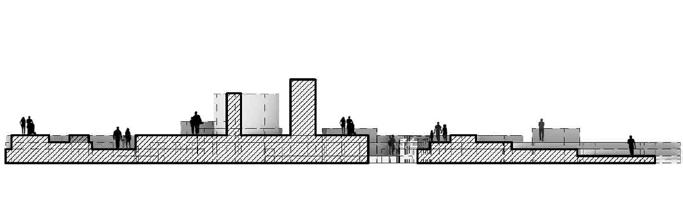 It creates a sense of various circulation and platforms, adding to the vibrancy of the internal spaces within the hybrid spaces of the arcade.