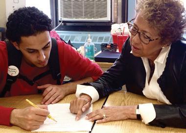 Photo of Charlynn Goins at Flushing International H.S. by David L. Marcus/The Trust