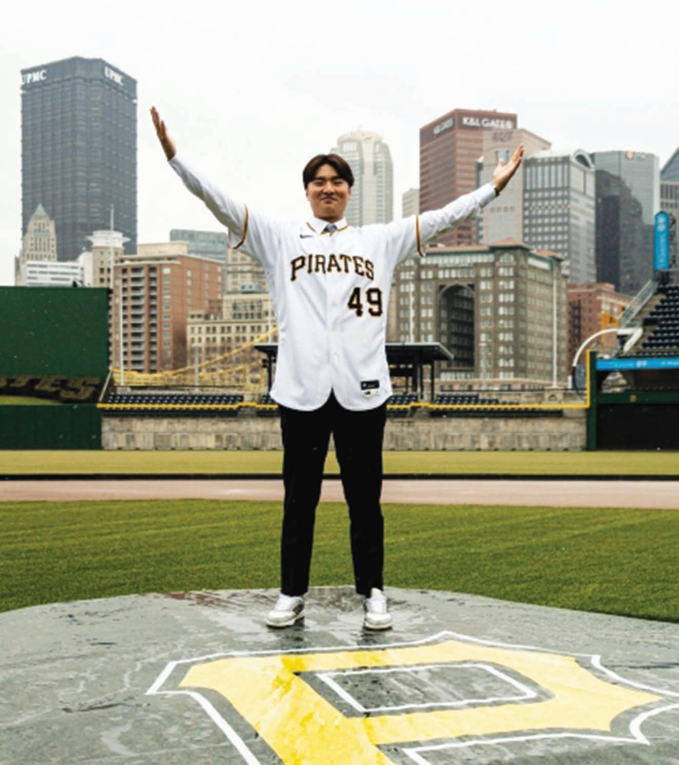 49번으로 그는 덕수고 재학 시절에도 같은 번 호를 달았다. 그는 이날 PNC 파크 마운드 위에 서 두 팔을 번쩍 들어 올 리는 기념사진을 찍기도 했다.