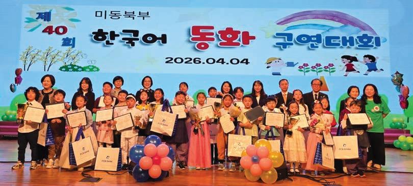 에 큰 박수로 화답했다. 이번 대회는 미동북부 지역 내 한국어 교육의 중요성을 다시 한 번 일깨우는 계기가 되었으며, 참 가자들은 서로의 경험을 나누고 친목을 다지는 소중한 시간도 가 졌다. 대상 수상자는 이주은 2학년 학생으로,‘책 먹는 여우 라는 제 목의 동화를 발표했다. 심사위원들은“여우씨는 자신 의 창의력을 발휘해 재미있는 이 야기를 썼고, 그 결과 베스트셀러 작가가 되어 부자가 되는 과정에 서 책의 진정한 가치와 독서의 즐 거움을 깨닫게 되며, 동화의 형식 을 빌려 독서와 창작의 가치를 전 하는 메시지로 울림