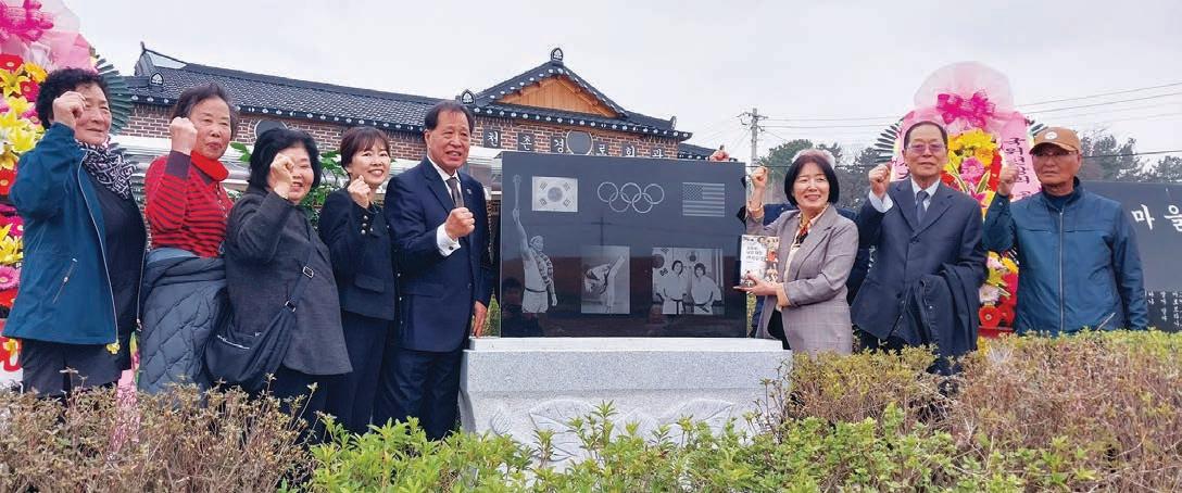 이다. 이를 기리기 위해 면과 부락 민들의 마음을 모아 이 기념비를 세웠다”고 전했다. 기념비는 앞면엔 상단에 오륜 마크를 중심으로 태극기와 성조기 가 나란히 있고 박연희 회장, 박연 환 회장의 현역 시절 역동적인 모 습을, 뒷면엔 두 형제에 대한 공적