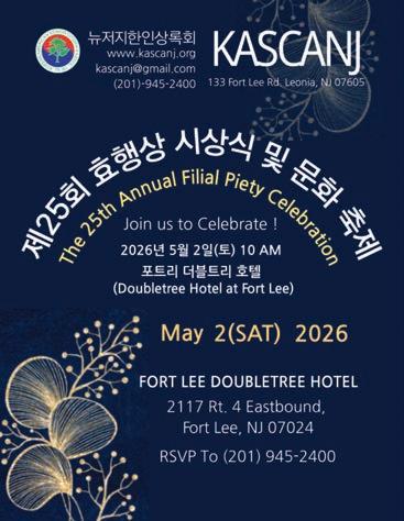 5월 2일(토) 오전 10시부터 포트리에 있는 더블 트리 호텔(2117 Route 4 Eastbound, Fort Lee, NJ 07024)에서 개최한다.
