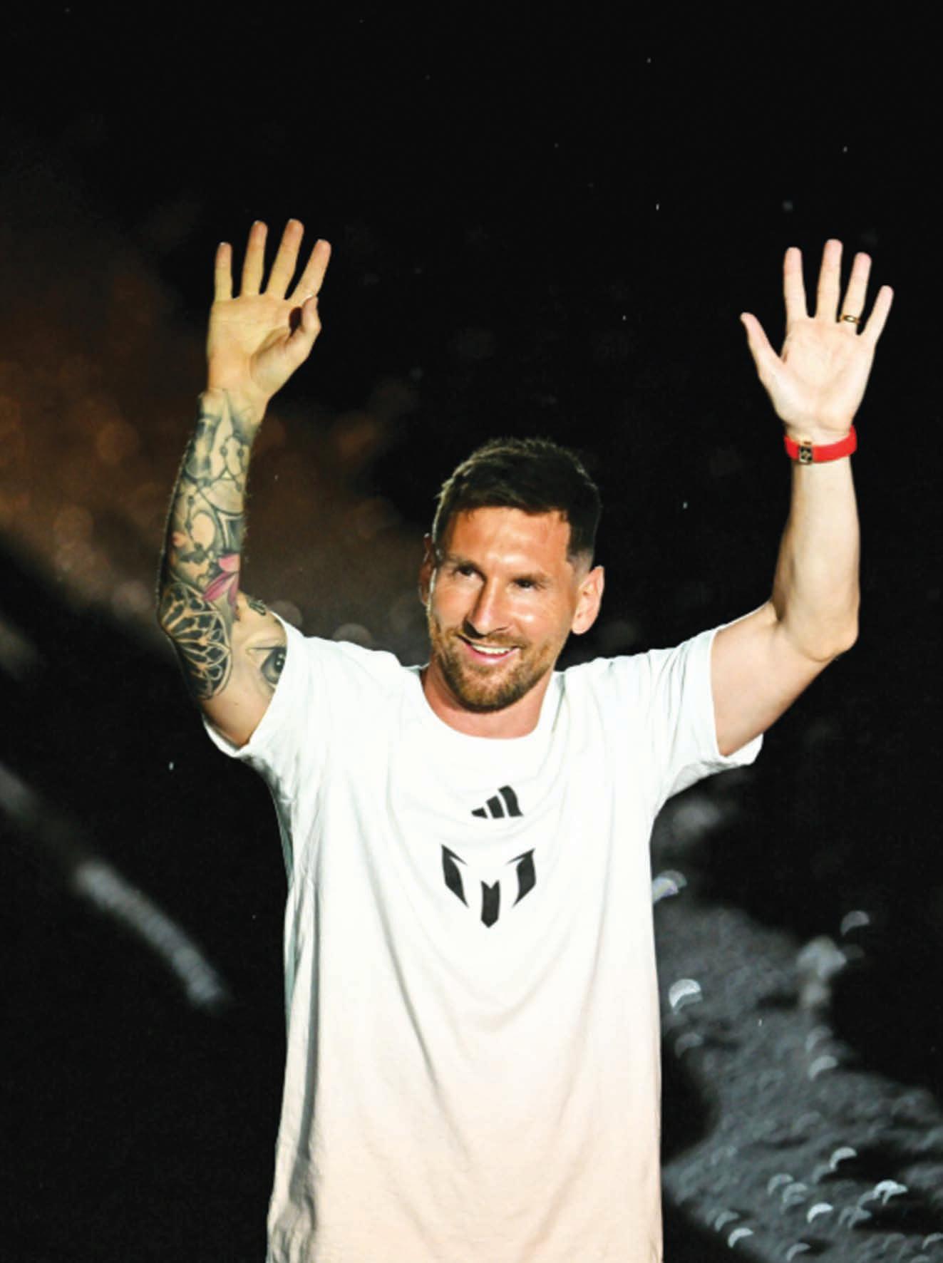공동 구단주인 호르헤· 조세 마스 형제도 메시 를 환영했다. 등번호 10 번과 자신의 이름이 들 어간 유니폼을 메시가 들어 올리자 경기장에는 폭죽이 연신 터졌다.