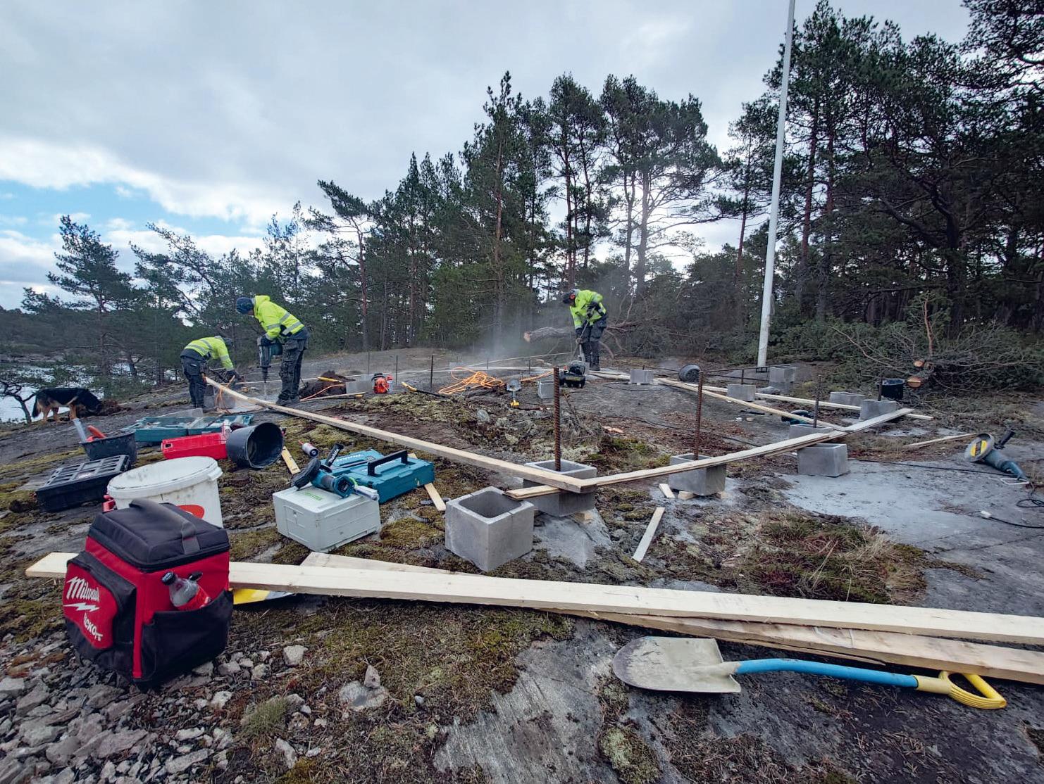 Allt material transporterades med båtar och pråmar. Som mest var det tio byggare som arbetade på den nya bastun.