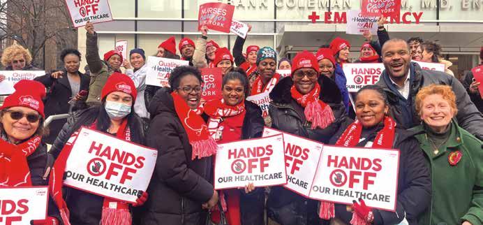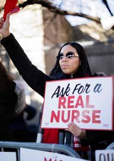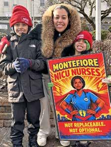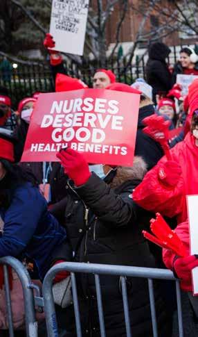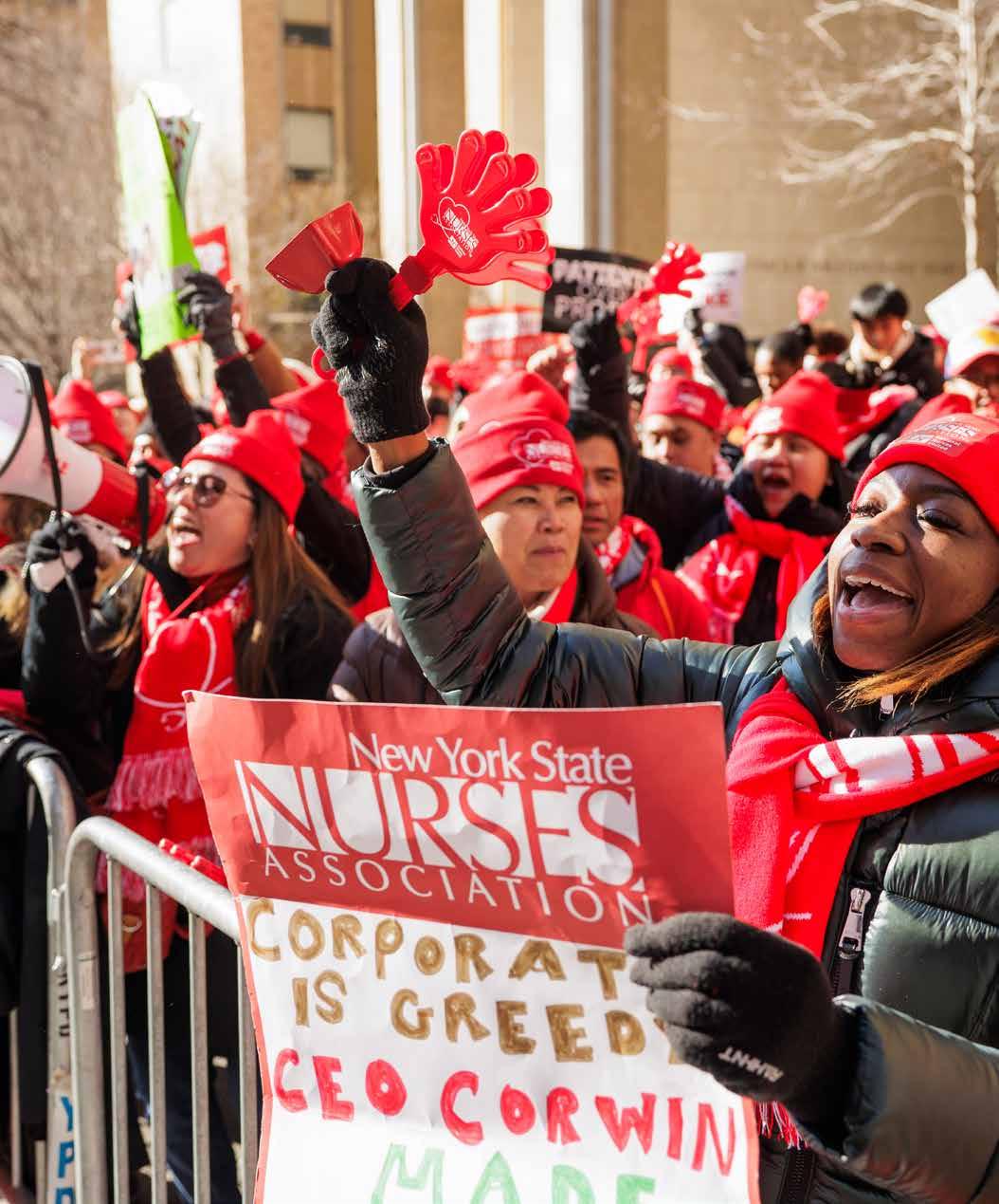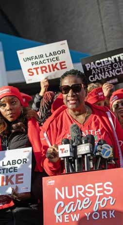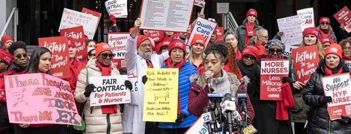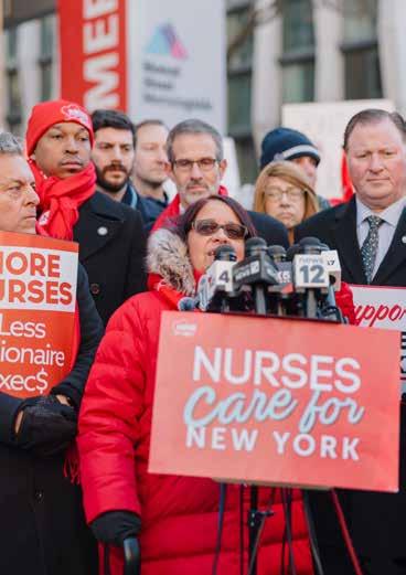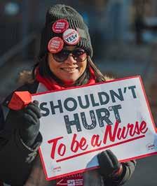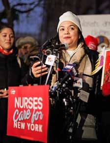 In New York, systemic inequities persist. Black mothers are five times more likely to die from pregnancyrelated complications than their white peers.3 Nurses continue to see hospitals such as Montefiore Health System divest vital services in low-income communities of color while investing in high-tech equipment and expanding care in wealthier, whiter neighborhoods. Nurses are standing up against these injustices. Forbes continues, “We are fighting for a healthcare system that is just and humane, just as healthcare should be.”