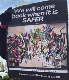 violence. Safety improvements include additional weapons detection systems at entrances, additional visitor screening, wearable panic alarms, steps toward implementing behavioral health rapid response teams, and additional paid time off to appear in court for nurses affected by workplace violence.