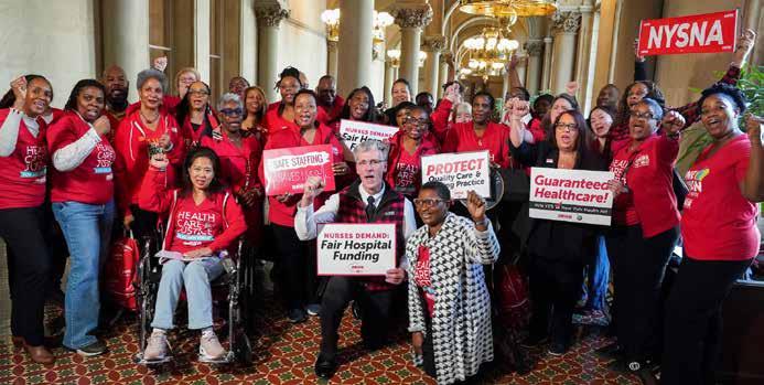 hospital executives over nonpayment of their benefits (read more on page 13). Maimonides Medical Center will soon merge with New York City Health+Hospitals to stabilize its finances. Overall, struggling safety net hospitals will face even greater financial strains as federal healthcare cuts take effect. NYSNA members and other healthcare advocates must continue advocating to increase funding for public and safety net hospitals to