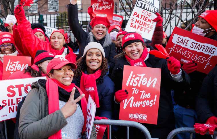 Ibecame a nurse because I saw a need in my community for nurses who looked like me. I had spent my childhood translating and mediating between family members and medical professionals and realized I needed to be on the other side. However, when I became a nurse, I realized patients weren’t the only ones who needed advocates — nurses did as well. While we are the ones who know our patients best, hospital management routinely sidelines our voices and ignores our needs. I became active in NYSNA very early on as a nurse at Maimonides Hospital. We fought for the same issues we fight for today — safe staffing, a voice on the job and respect. When NYSNA nurses launched our contract campaign at Maimonides in 1998, our employer wanted to take away our medical coverage and pension. We were on strike for four weeks. They were long and hard, but the longer we were out there, the stronger we got. After several weeks, we became more resolute and less willing to compromise. In the end, it became about respect. We went back into the hospital only after showing the hospital that we weren’t playing around. Maimonides nurses secured the first wall-to-wall ratios, created labor-management partnerships, and held monthly meetings to review every Protest of Assignment complaint. The strike was never about pay; it was about safety and respect. Going back to the hospital was very emotional. We learned our power, showed the hospital that we would never back down, and improved care. We inspired other workers, like our residents, to fight for their rights as workers.