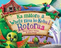 The significant places and stories of Rotorua area are showcased here as Whetū and Kohu, a kea and a kererū, explore the area. A map and some fun facts about the mānu of Aotearoa add informative value. Tamariki will be engaged by the questions this book asks of its readers, and by its whimsical, bright and colourful illustrations.