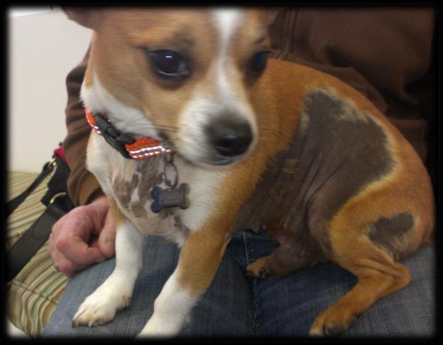 Pippin, a two-year-old MN Chihuahua, presented with a one-year history of progressive alopecia, diagnosed by his veterinarian as Alopecia X.