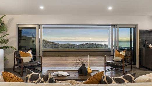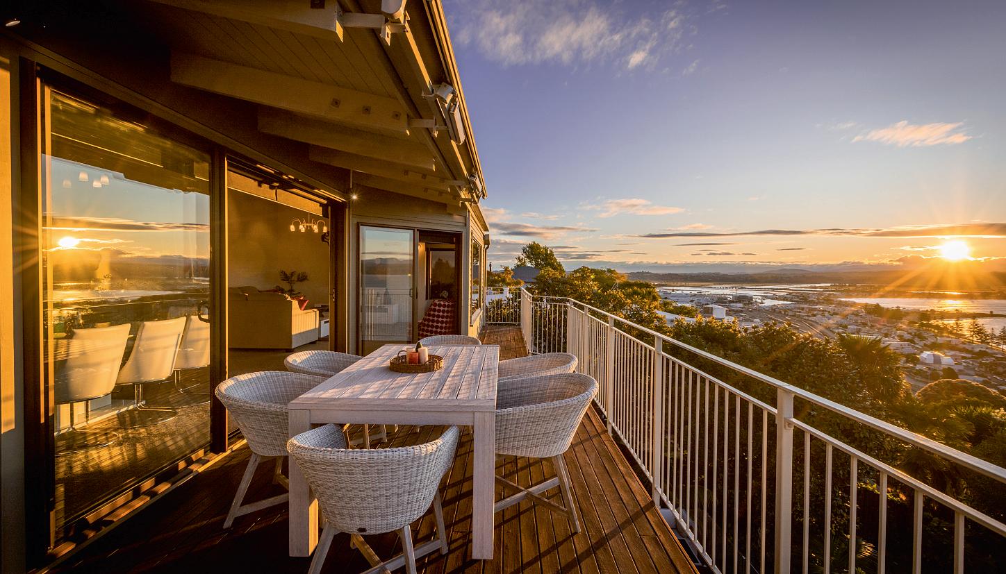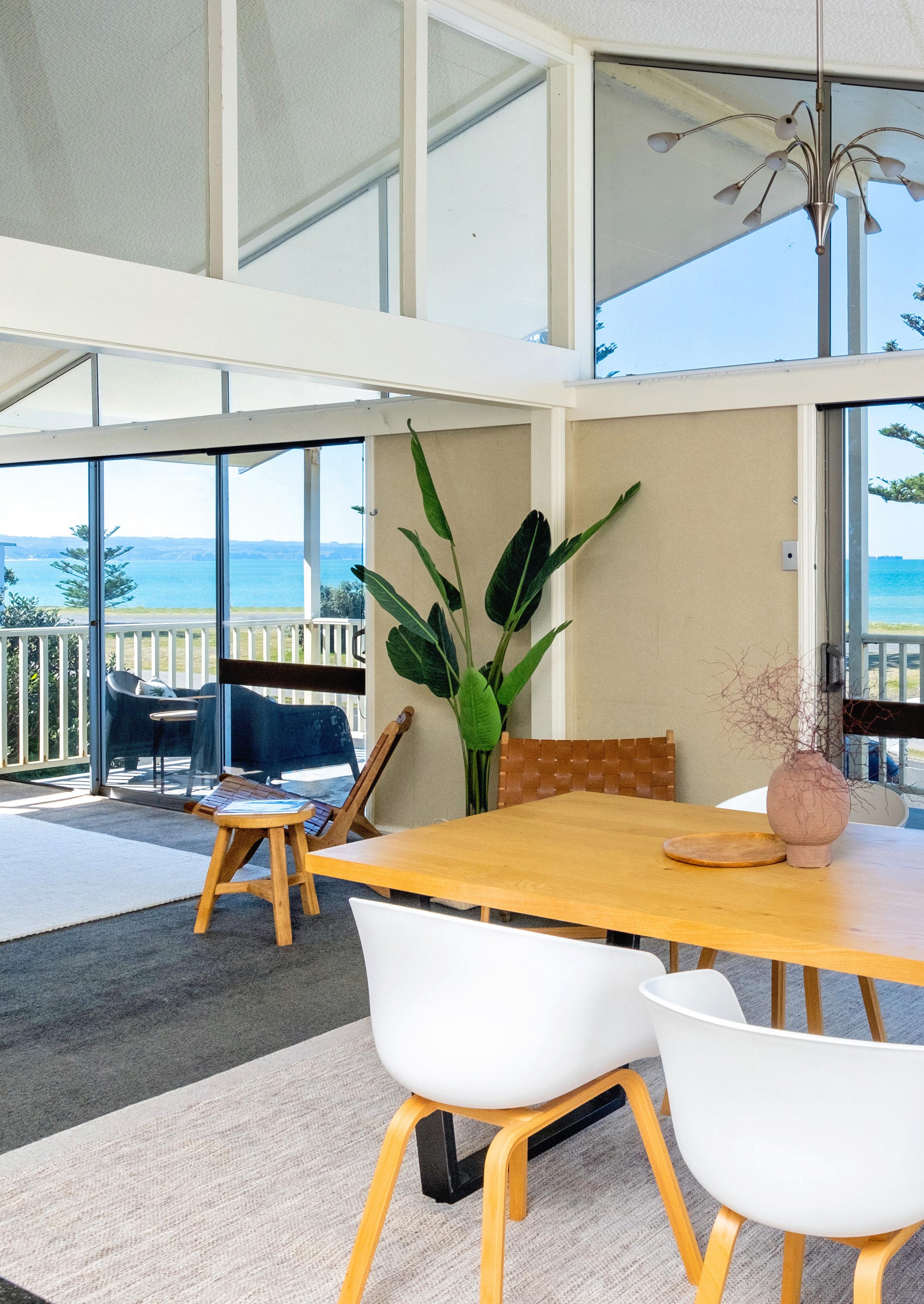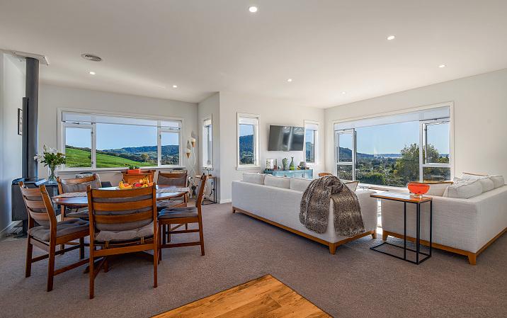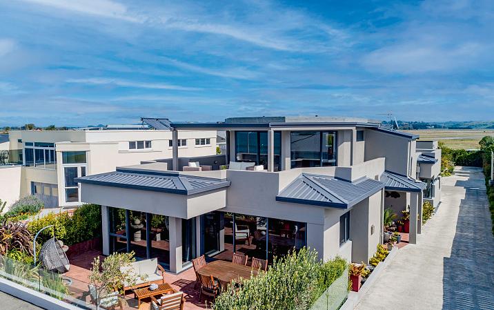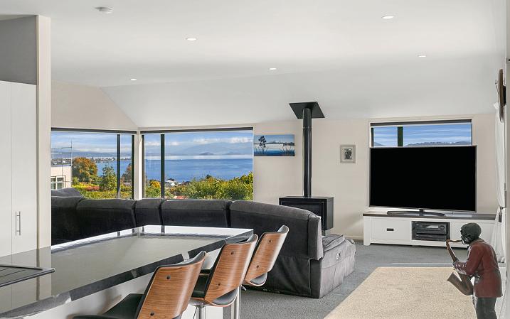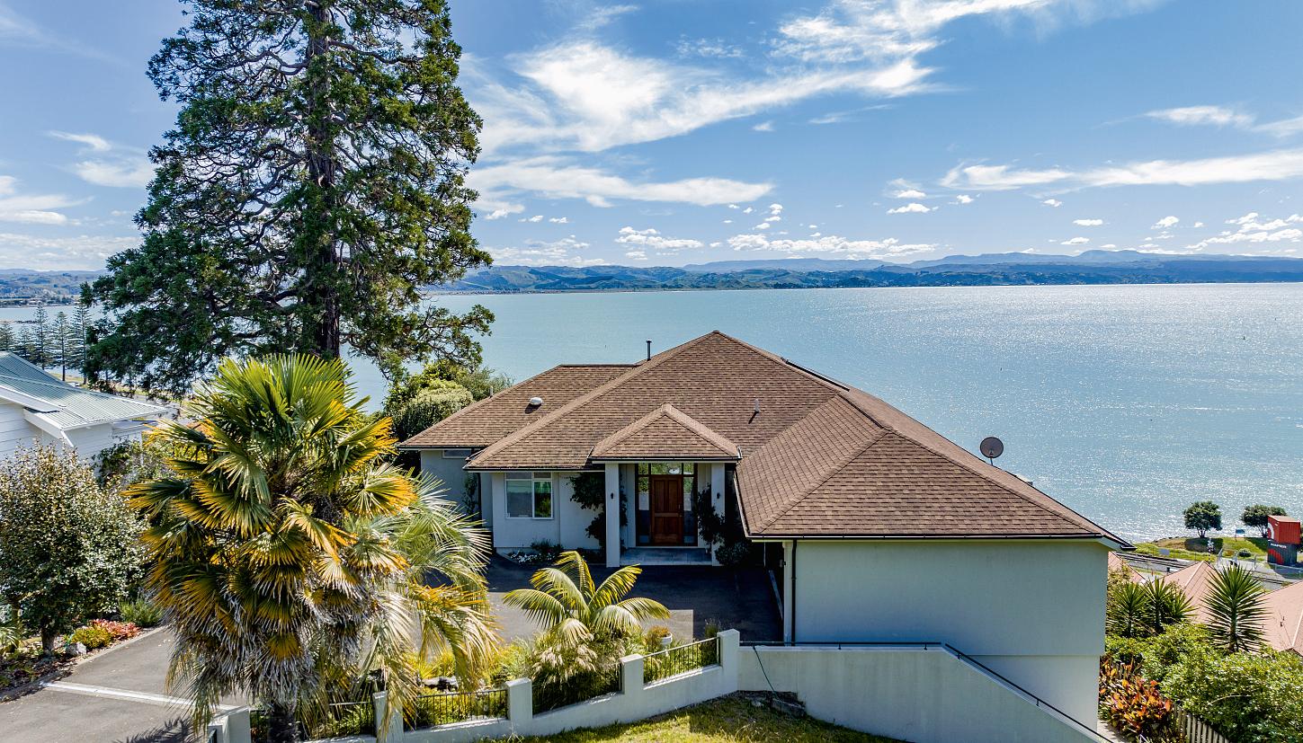 The contemporary glass and steel home enjoys elevation for a stunning panorama of the Bay of Plenty coastline, Pacific Ocean and islands. The gloriously glazed north facing frontage spans open plan living, an entertainer's kitchen flanked by dining and living spaces, plus, all the bedrooms. Open the doors to your outdoor environment when its warm. Hunker by the gas fire and admire the elements when the weather is inclement.