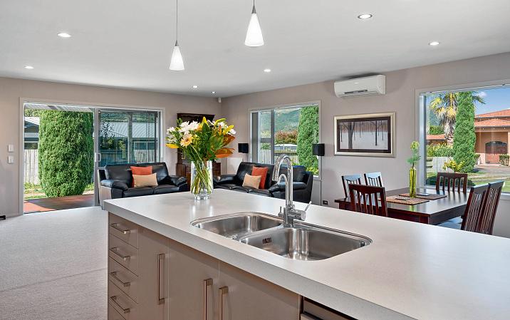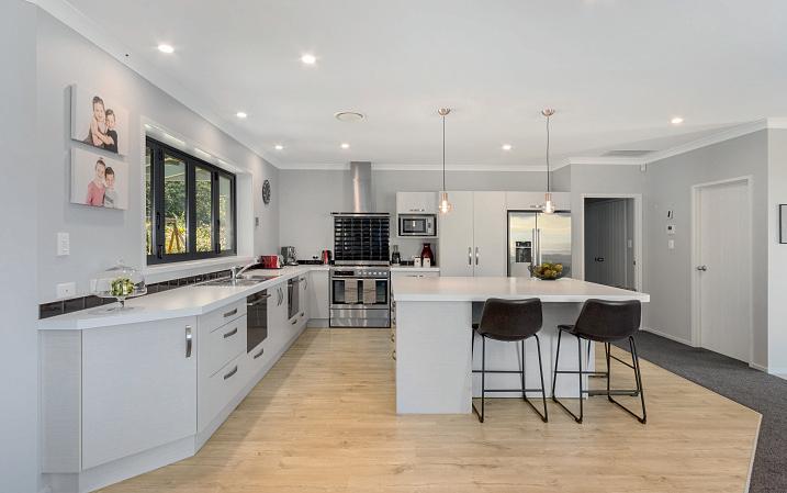 The heart of this generously proportioned home is the modern open plan kitchen with scullery, dining, and lounge. Featuring dual access to the decks on either side, maximising the sun all day long.