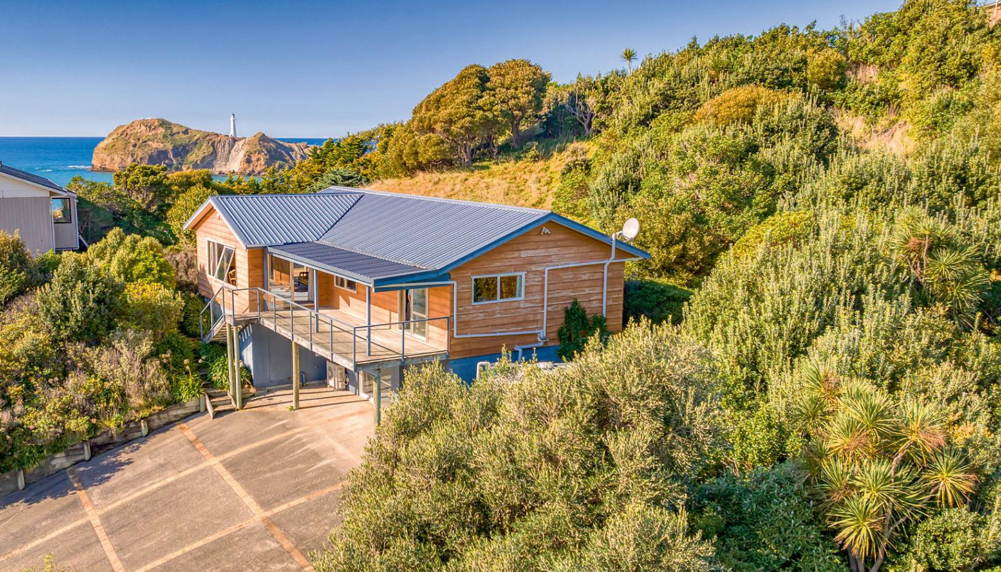 The delightfully sited three-bedroom main home features open plan living facing the sea. The deck extends to link a self-contained sleepout, ideal for additional guests keen to share your secluded slice of paradise.