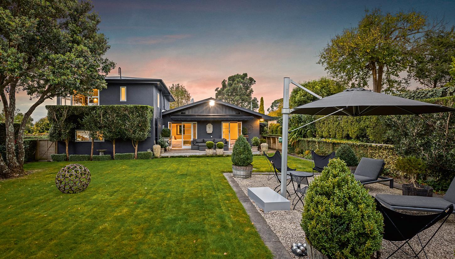 Beautifully refreshed over recent years, the five-bedroom home interplays with the outdoors and enjoys a warm synergy with nature. Every room, upstairs and down, frames stunning garden views. Beautiful interiors are offset by a soft colour palette, rimu timber, and bespoke window treatments.