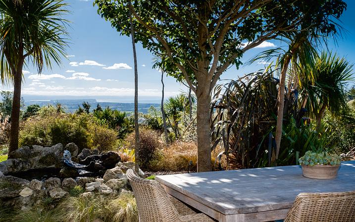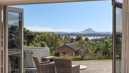 A concealed property approached up an enticing avenue of native and exotic trees. Relish all day sun in a beautifully executed north facing home with Mauao and city views framed by extensive glazing in the living area and master suite. Savour superbly appointed kitchen and bathrooms, copious storage. Fling back bi-fold doors to link terrace and covered patio merging to over an acre of grounds in the city with a rural boundary. Wander lawns and gardens shaded by mature trees and backed by farmland and hills. Plant vegetables, pick avocados, keep hens. An easy flowing home with all the living and bedrooms on one level, and storeroom and wine cellar in the basement below, where the triple garage opens to extensive on-site parking. Enjoy a relaxing and rejuvenating atmosphere with environmentally friendly features including twenty solar panels and a shared neighbourhood water bore. A privately sited minor dwelling adds options for extended family and guests.