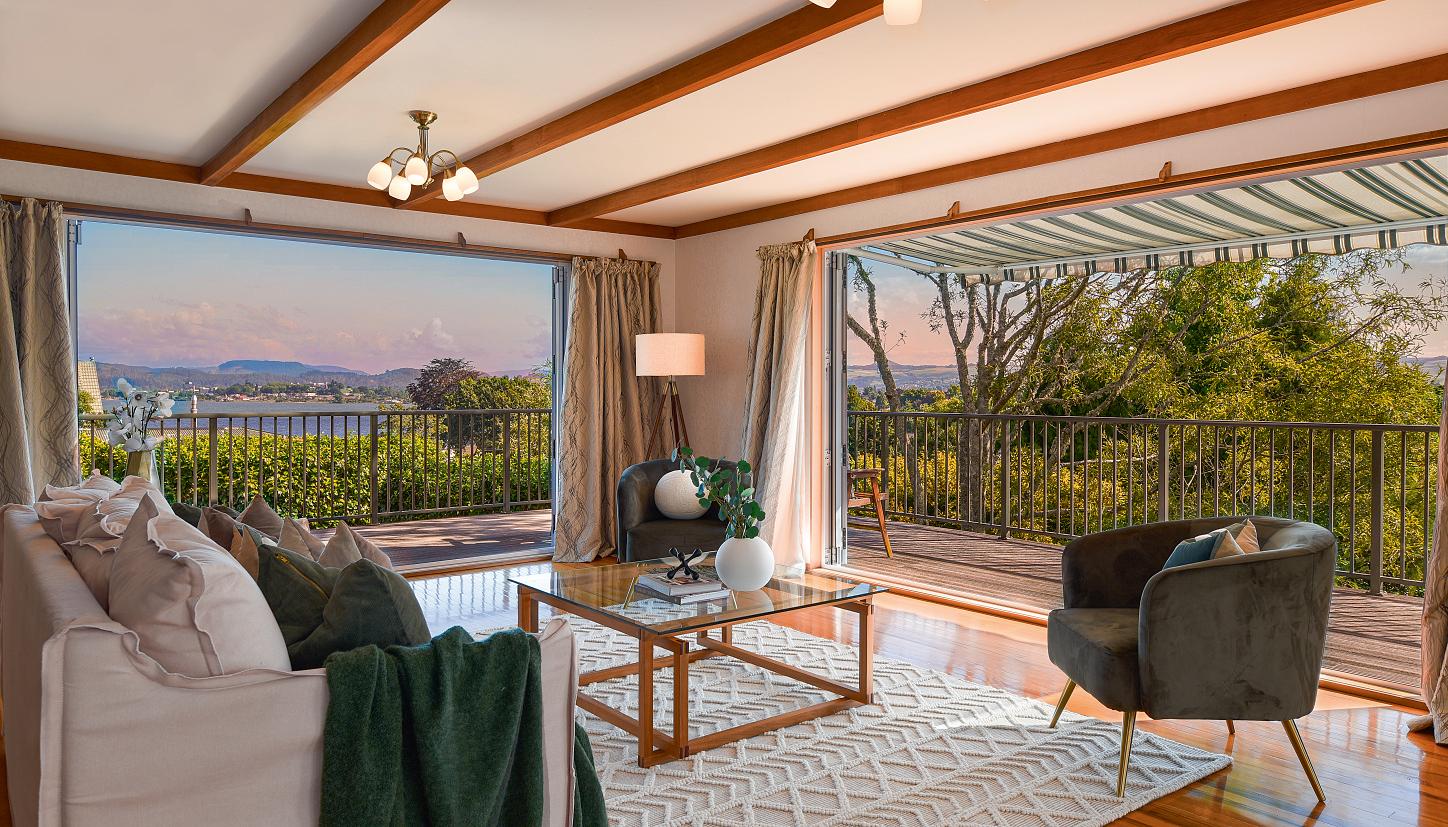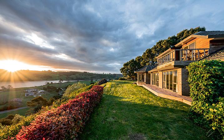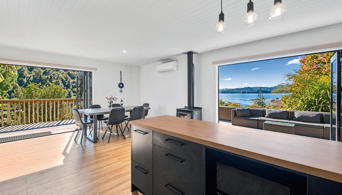 An elevated 1.55 ha site exudes privacy and tranquillity, surrounded by established trees, low maintenance gardens, a bountiful orchard and a space with a jetty, ready for a pool! A large feature lawn extends from the north-facing dwelling to a ha-ha, ensuring uninterrupted views. The land is aptly suited for sheep grazing, with fenced paddocks.
