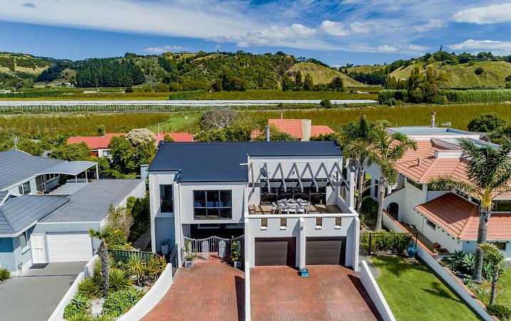 Step into a world of contemporary elegance with this architecturally designed New York loft-inspired residence overlooking Papamoa Beach.