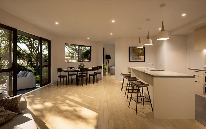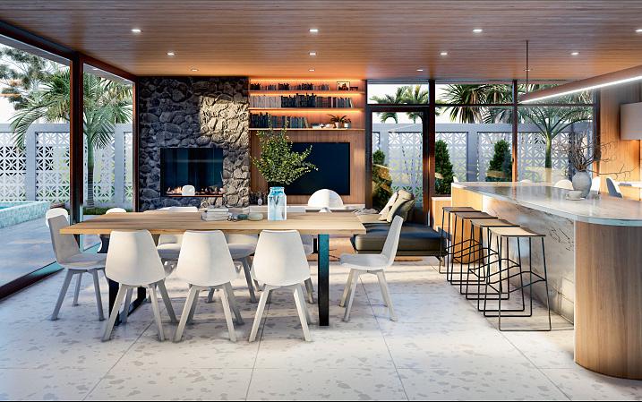 The Home: Luxurious living, designed for complete privacy from the business, and a peaceful and serene living experience. Mid-century inspired interiors that exude style and sophistication. The focal point of the home is the stylish, state of the art kitchen and living areas.