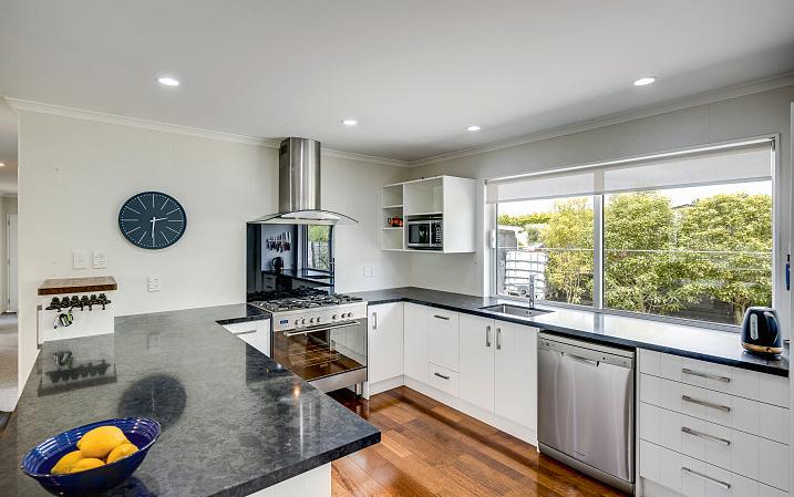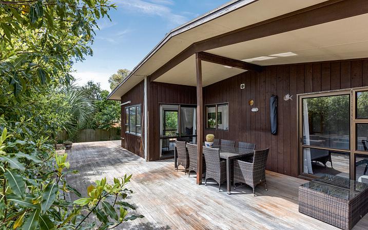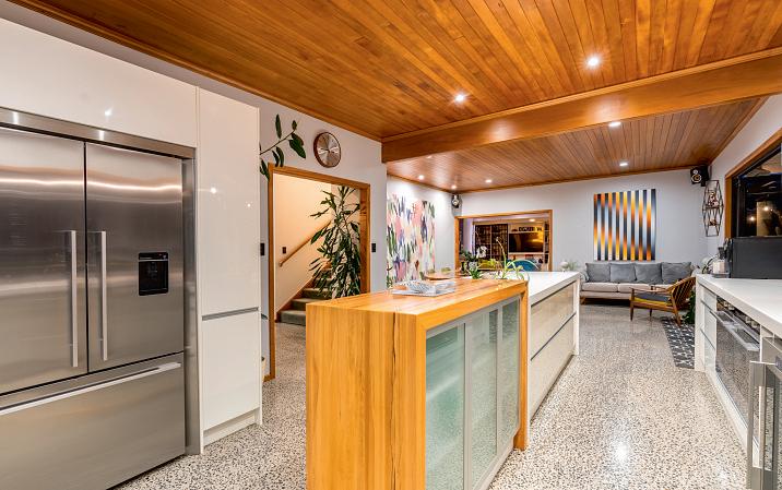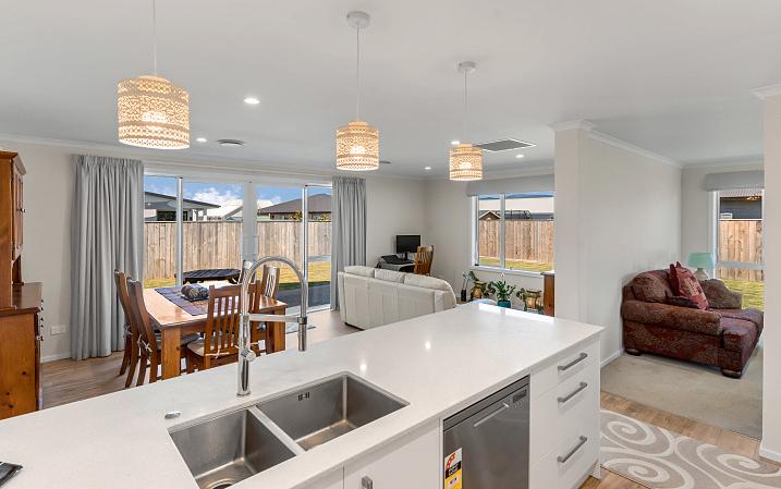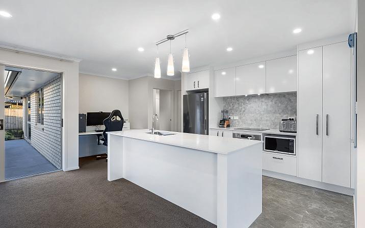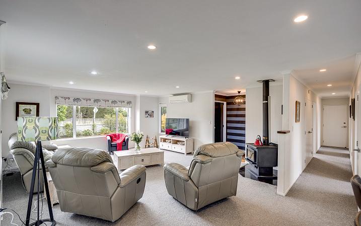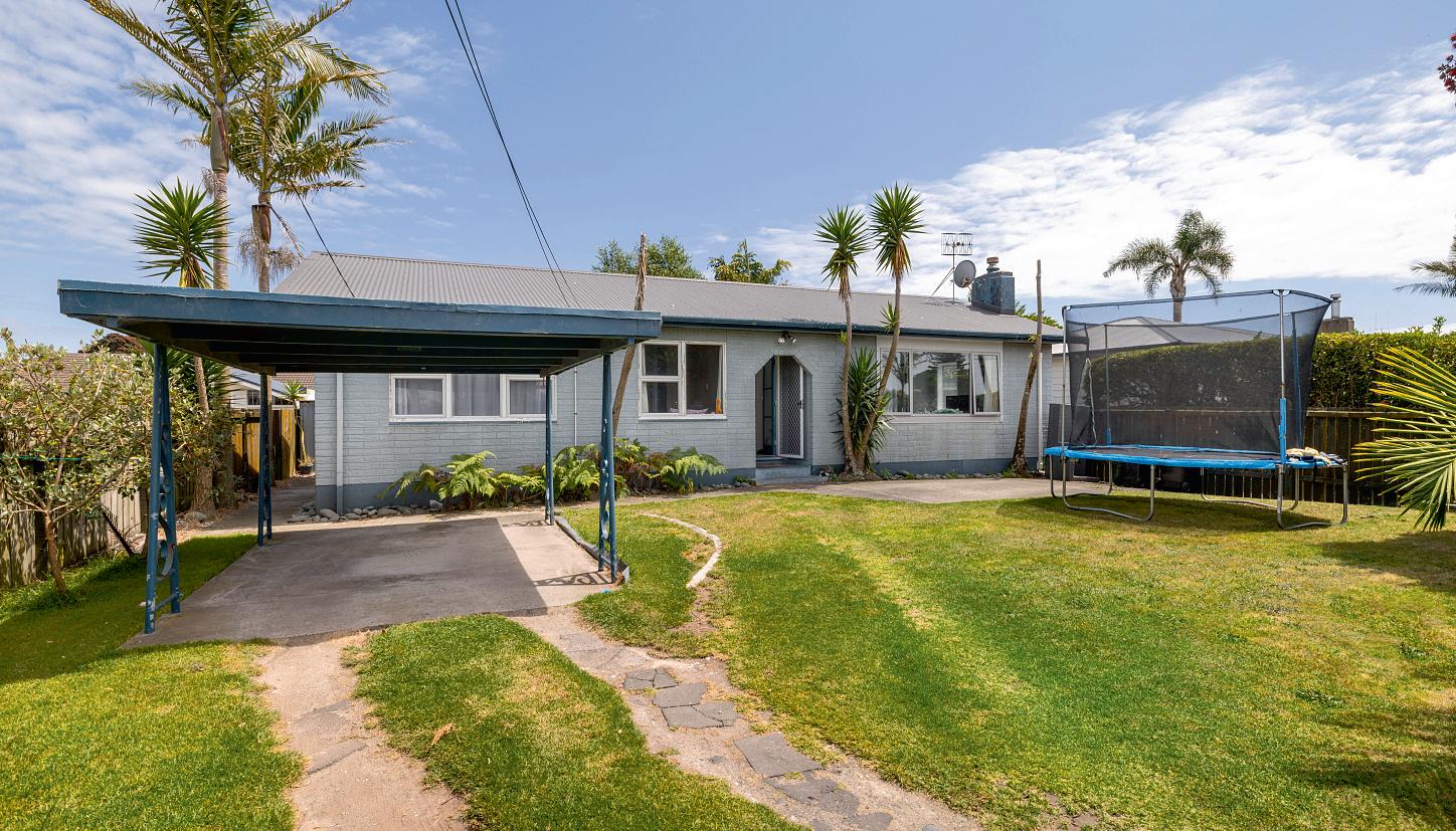 The 255 sq m brick house was built in 1961 and boasts five double bedrooms, four bathrooms, four toilets, two heat pumps and a massive open-plan living area. Plenty of room for parking, with an extralarge double carport and concrete driveway. The section is safe for children and pets, fully fenced and gated at the rear.