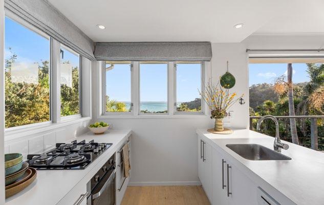 Loved by the same family for 17 years, nestled into a quiet road with a box seat position taking in panoramic sea views stretching across the whole of Huruhi Bay and beyond. Curated island living that embraces comfort and ease.