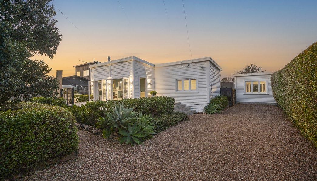 Carefully curated 1950’s cottages with panache are not easy pickings in this part of town. Especially when they boast the raw benefits of a wide flat yard, languorous dual-living areas and prime beach and boat proximity. All hours of the day are catered for at this white, weatherboard, hedged haven –and all on one level, from your morning coffee, pm cocktail, through to retreat at the drawing room fire-side. A panelled Master with its set of French doors offers a hint of hauteur to this all-season bach for relaxed, Island living. Tidy grounds with an immaculate northern lawn, vege patch, fruit treesfrom feijoa to plum - are fully fenced. Is this starting to bring a kiwi dream into focus? The offering also includes a large garden studio and two of the most excellent storage sheds you will find. Our owners have been solid custodians and assure us, that while there is nostalgia, there will be no looking back, not even after nine years. Not going once, twice...just going once.