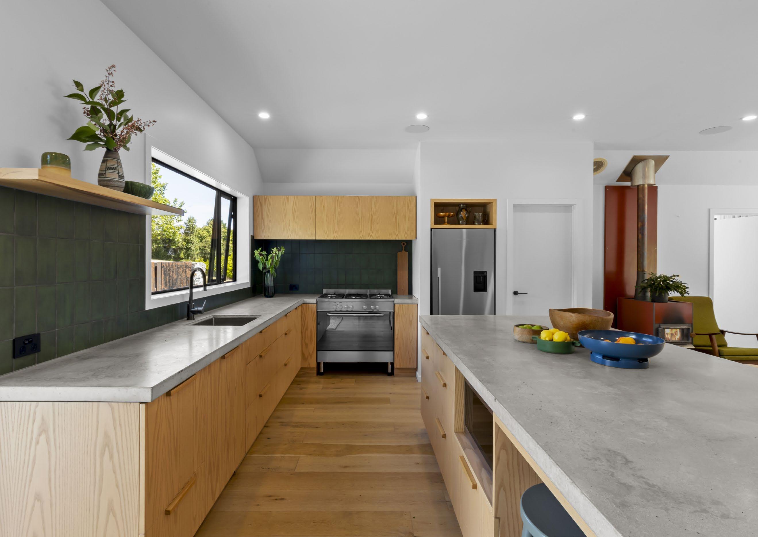• Spacious kitchen with new cabinets, concrete benchtop and separate pantry