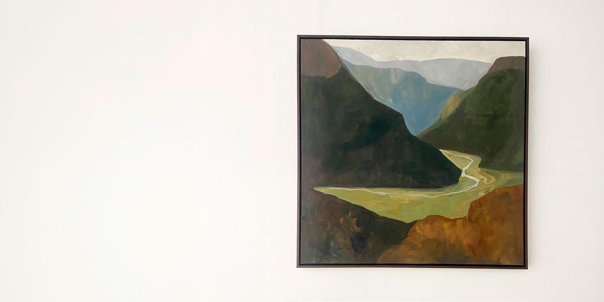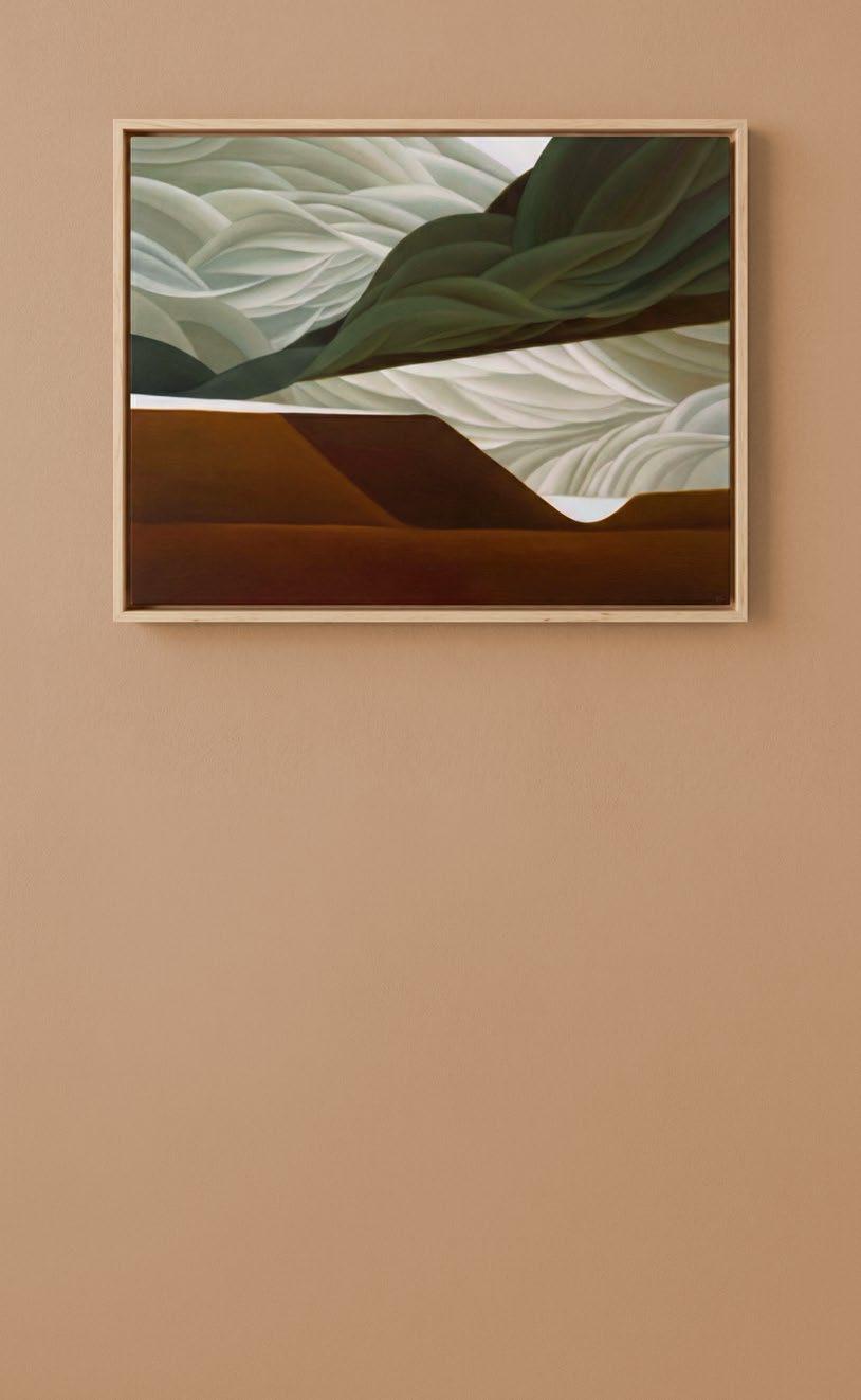 The Home.land series by Aida Smith draws on scenes from across Aotearoa, and are created in a way that invokes familiarity and a touch of nostalgia. Smith paints dramatic landscapes but softens the forms and uses restrained palettes perfect for everyday life at home. This Wellingtonbased artist works primarily in acrylic, using solvent-free materials and minimal mediums to create work that is grounded both materially and emotionally.