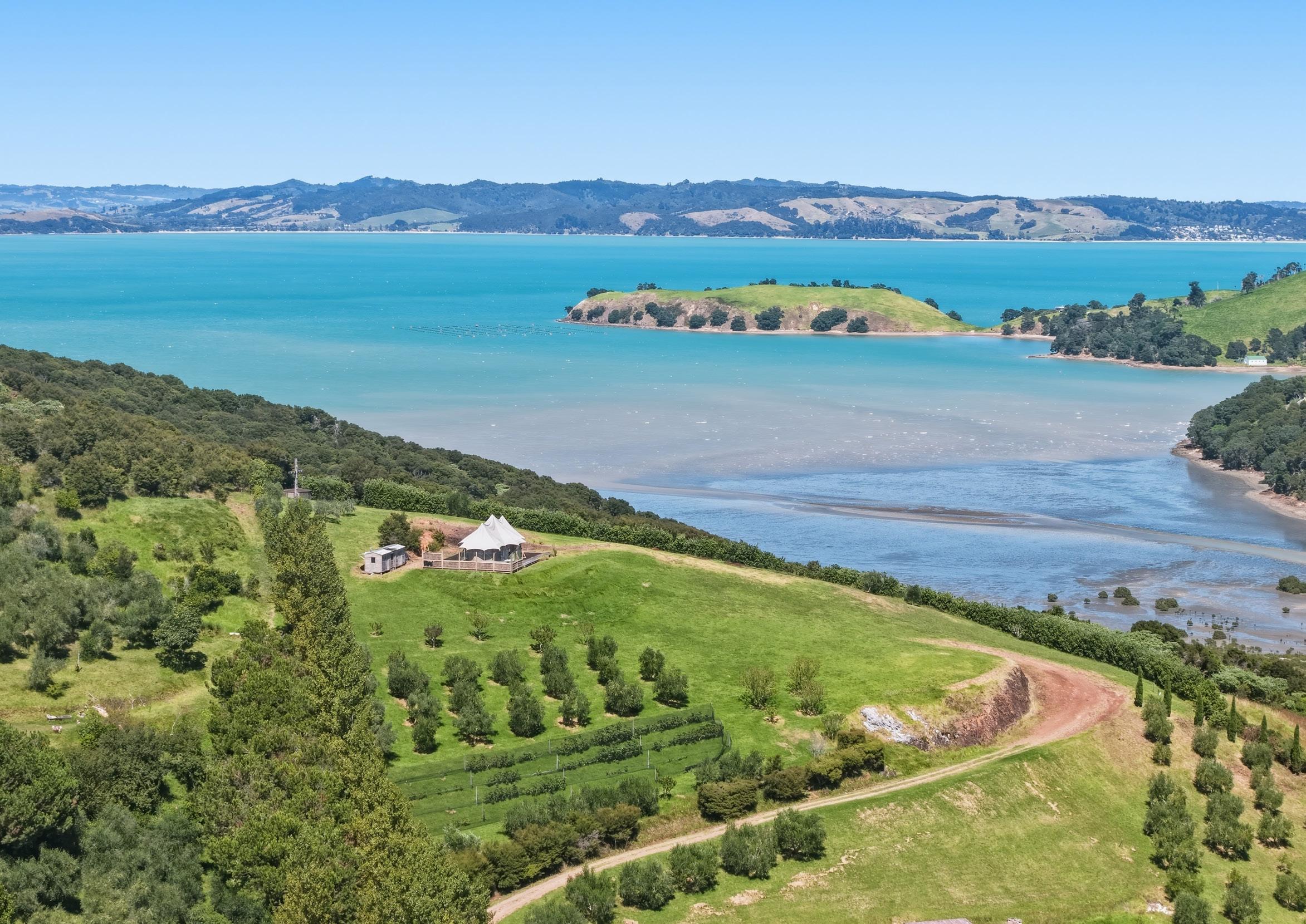 At the upper reaches of the property, a designated building platform commands elevated views toward Awaawaroa Bay. Plans have been drawn. The potential is real. A helipad provides direct access to Auckland in approximately ten minutes.