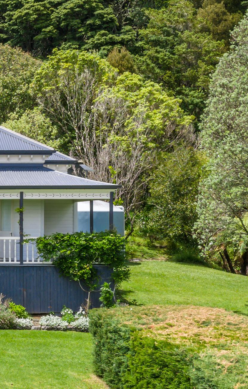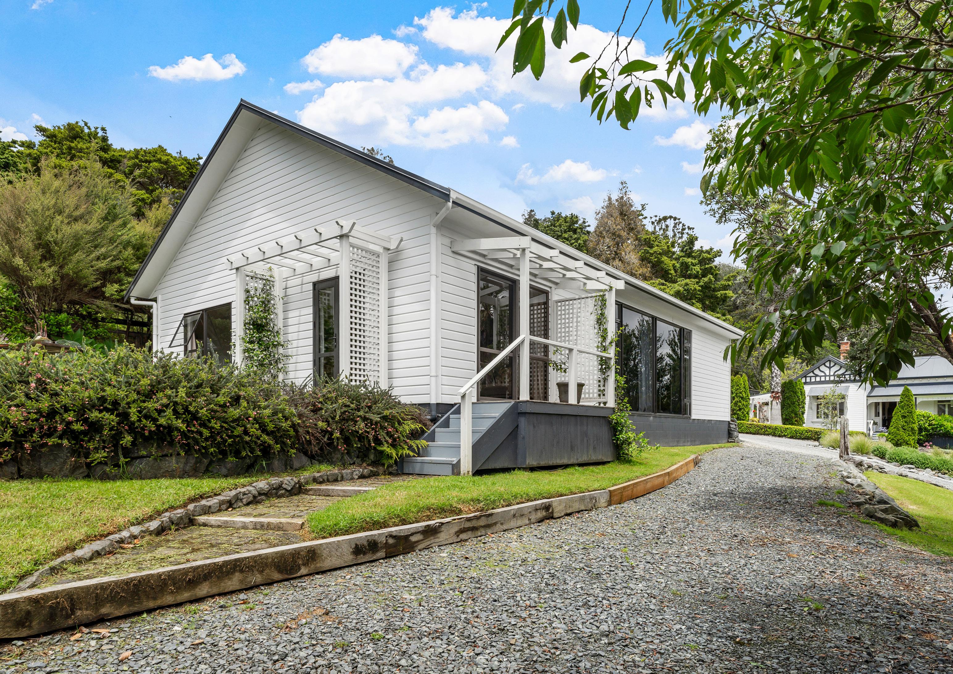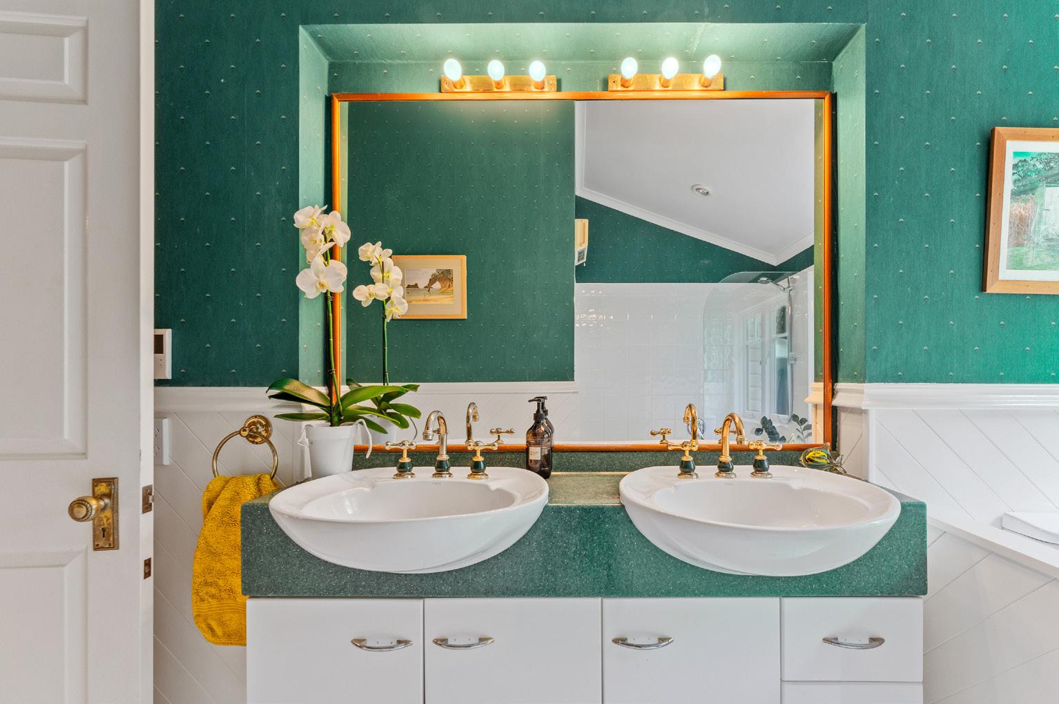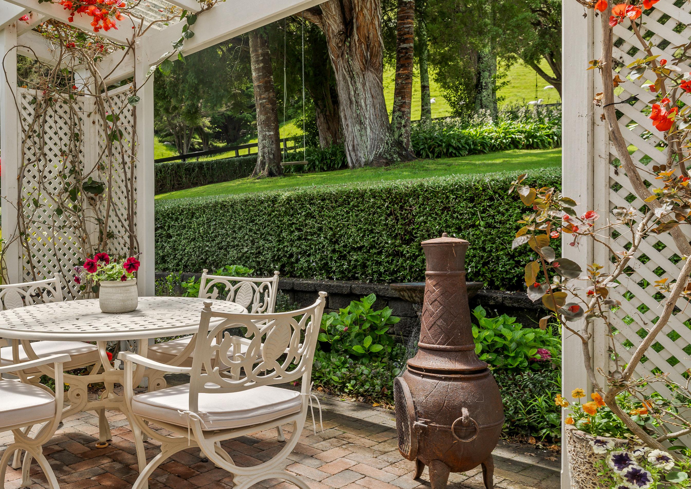 Moved from Mt Eden in 1988, the home has been re-sited with original features retained and the brick chimneys reinstated. New bifold doors and windows have been added to open the charming farmhouse kitchen and casual living area to a private, bricked courtyard, conservatory and stunning backyard garden perfect for outdoor entertaining. The garden is studded with mature native trees including Kauri,Puriri and a pretty stand of Nikau palms.