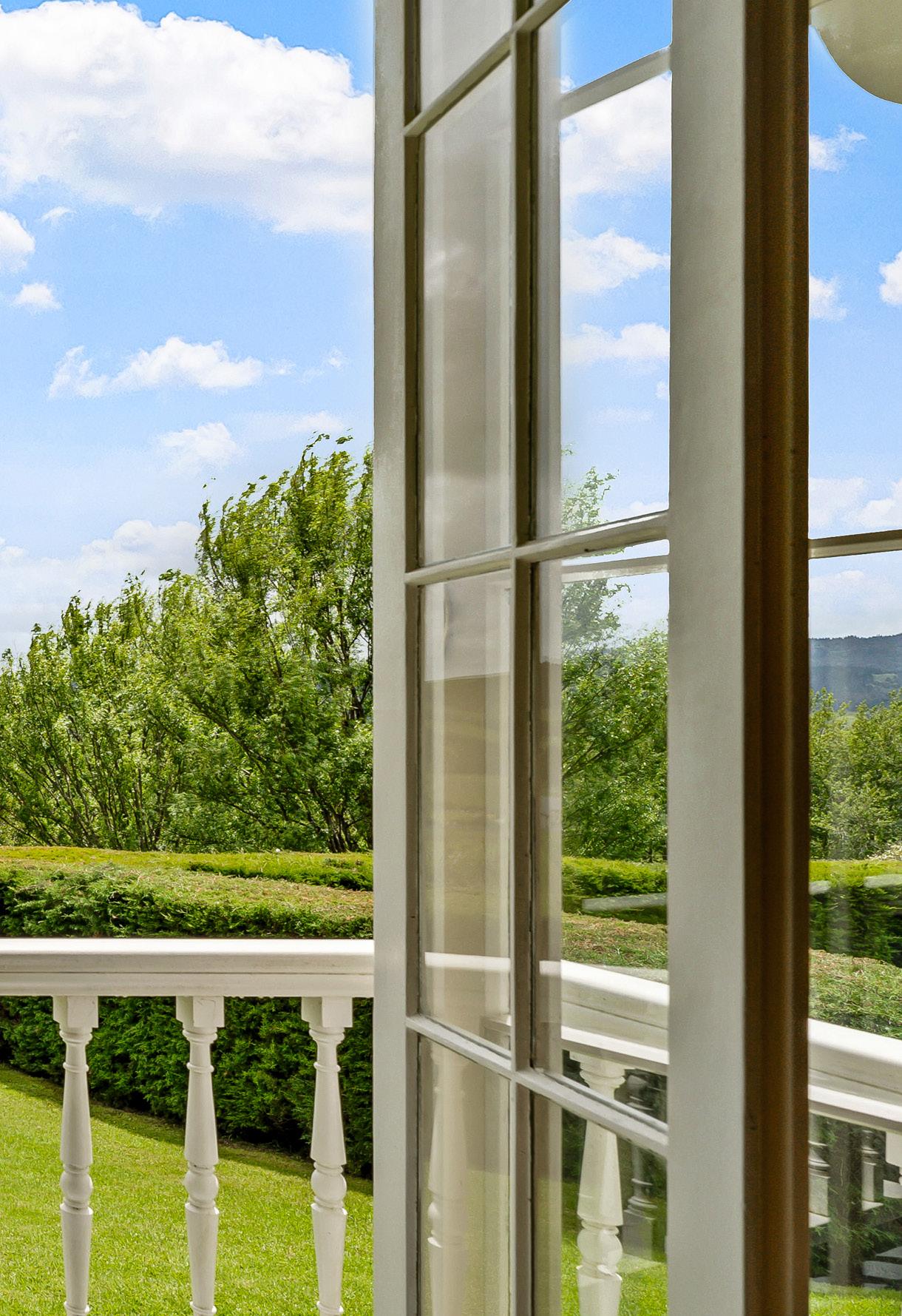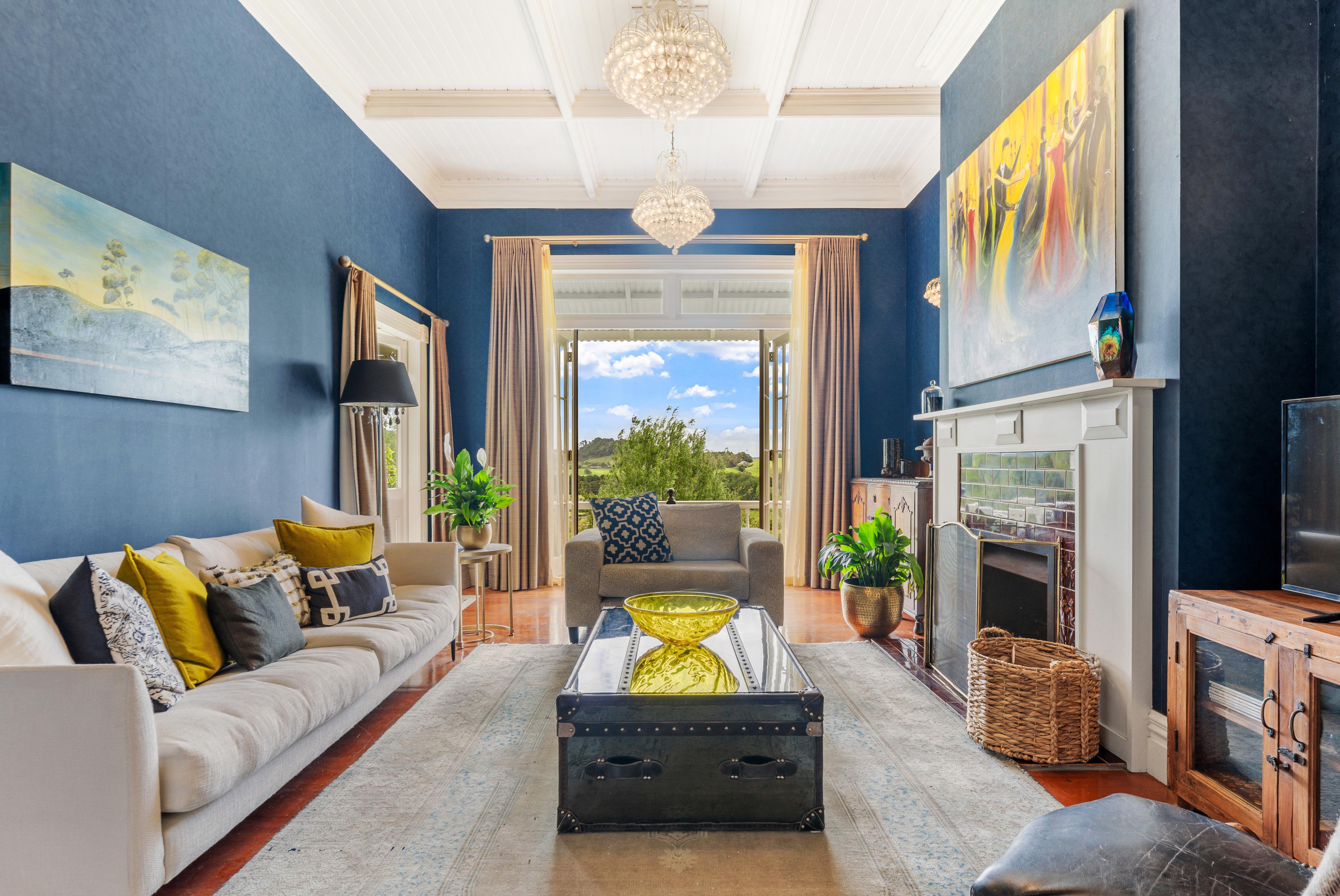 • The formal lounge with open fireplace boasts large bifold doors to a Juliette balcony looking West over the valley and enjoying glorious sunsets.