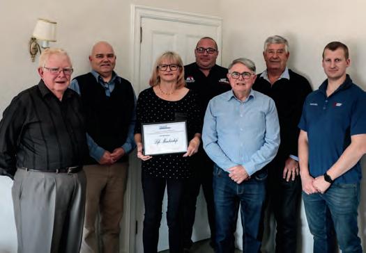 From left: Dave Gilles (TTMF life member), Matt Gilles, Kate Bucknell, Harry Clark, Brian MacDonald (life member), Neil Boys, Rob Johnston. on the TTMF subcommittee that developed the code of practice for designing and manufacturing suspension systems. Stevenson receiving his TTMF life membership with his son Mike.Don Hutchinson and current IRTENZ president Chris Carr have been awarded life membership of the organisation. Don was also awarded the IRTENZ Outstanding Industry Service Award.