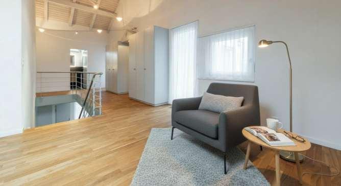 Die Wohnung wurde 2022 umfassend erneuert und erstrahlt mit stilvoller Ausstattung und einer durchdachten Raumaufteilung auf zwei Ebenen.