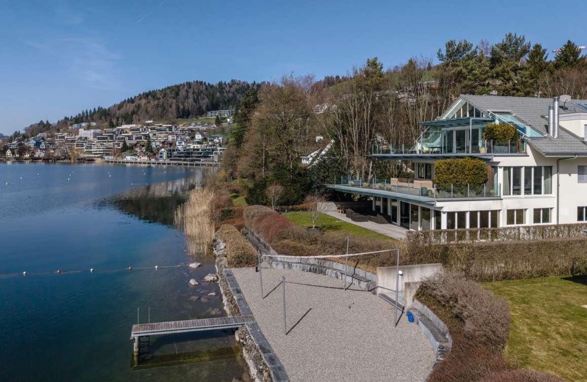Die erst kürzlich fertiggestellte, stilvolle 4½-ZimmerAttikawohnung mit mehr als 200 m² Wohn- und 74 m² Terrassenfläche wirddirekt mit dem Lift erschlossen und nimmt die gesamte Etage ein. So geniessen Sie höchste Privacy in Ihrem exklusiven Wohnsitz an bester Lage in der begehrten Seegemeinde Erlenbach