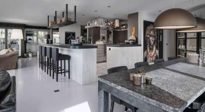 Die exklusiveVilla überzeugt mitgrosszügigem Wohn- und Essbereich sowie hochwertiger Ausstattung.Eine moderne Hochglanzküche mit Teppanyaki-Grill und Bora-Herderfüllt höchste Ansprüche.