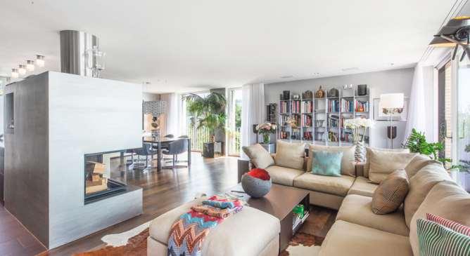 Auf beiden Seiten des 63 Quadratmeter grossen Wohnzimmers gibt es eine Sofalandschaft.