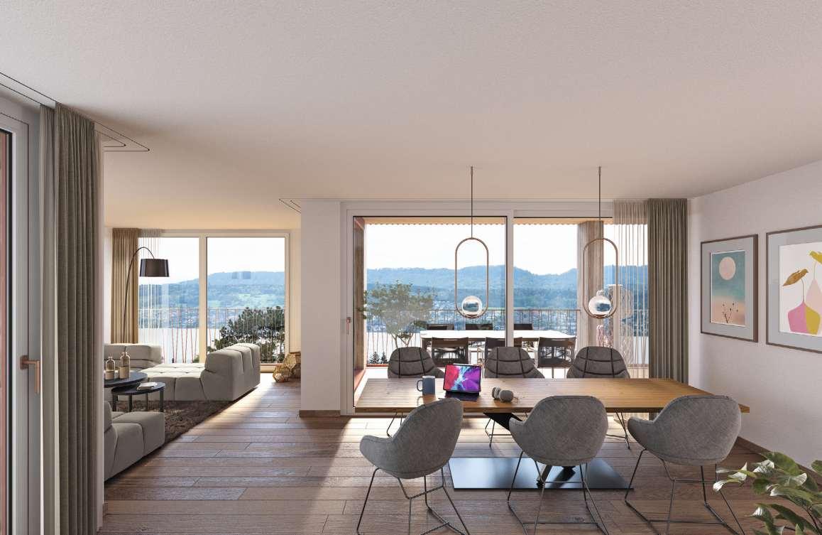 Diese wunderschöne und äusserst gepflegte Terrassenwohnung vereint Grosszügigkeit, Privatsphäre und eine Aussicht, die jeden TagaufsNeue begeistert. Die beiden südwestlich ausgerichteten Terrassen mit unverbautem Weitblick bis hin zu den Alpen schaffen ein einzigartiges Wohngefühl mit Sonne, Ruhe und viel Freiheit. Im Inneren überzeugen ein lichtdurchfluteter Wohn- und Essbereich mit charakteristischem Cheminée, eine stilvoll konzipierte Küche sowie hochwertigeMaterialien und eine elegante Ausstattung. Der Masterbereich mit Ankleide und Bad en Suite, zwei weiterevielseitig nutzbareZimmer sowie ein beheizter Hobbyraum mit Dusche und Sauna und ein klimatisierter Weinkeller unterstreichen den besonderen Anspruch dieser Liegenschaft.