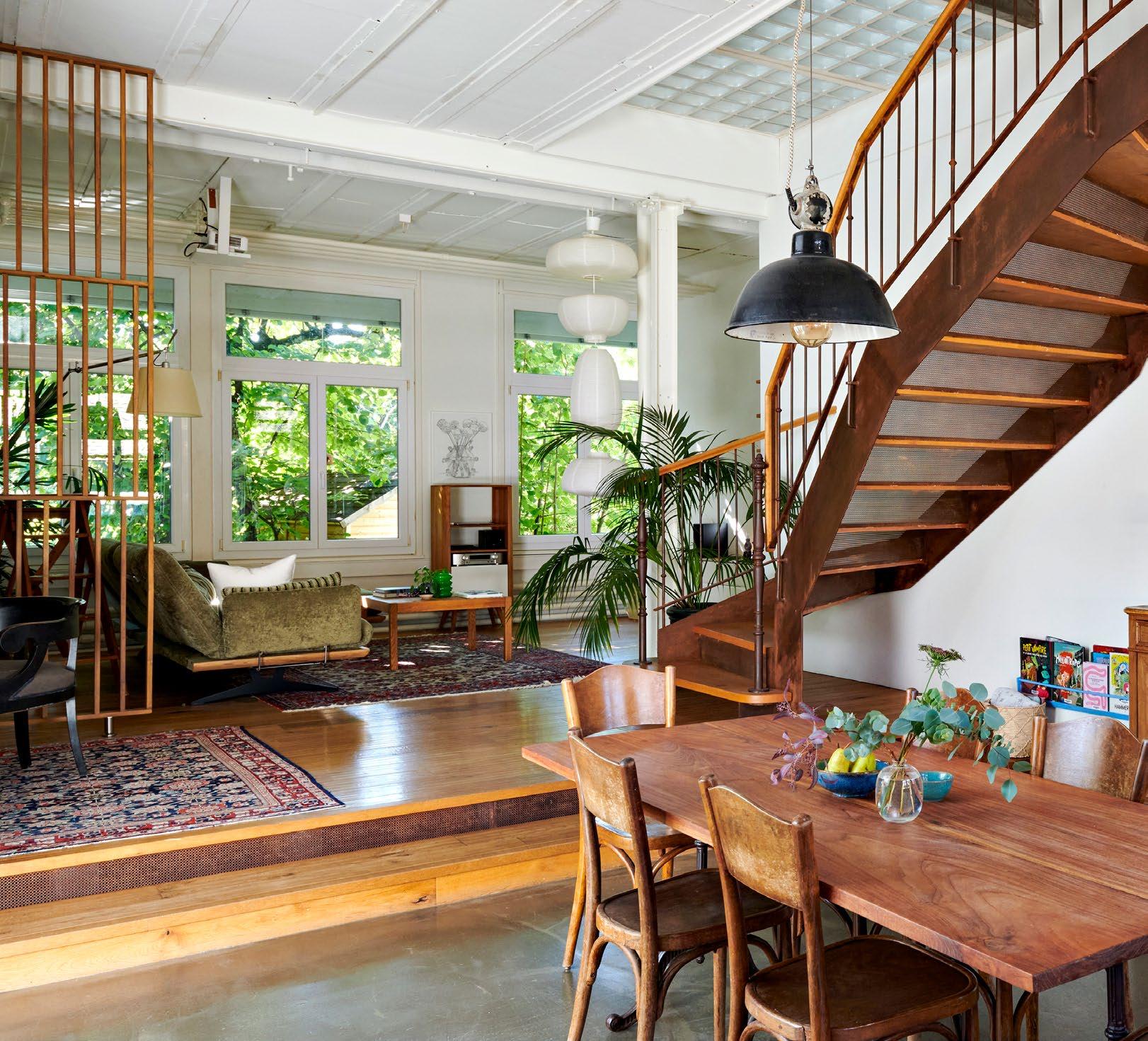Deux familles nous ouvrent leur porte et nous livrent un peu de leur intimité. Les deux artistes romands Chloë Naucelle et Till Rabus nous donnent à voir comment ils ont transformé une ancienne usine de micromécanique et y ont posé leurs valises et leur atelier, accompagnés de leurs trois enfants. Une famille recomposée qui évolue joyeusement dans ce havre de paix lumineux, coloré et atypique. De la couleur encore du côté de Zurich où la propriétaire a convoqué ses origines mexicaines pour créer avec l’architecte d’intérieur Christof Hindermann un cocon haut de gamme traversé d’influence latine.