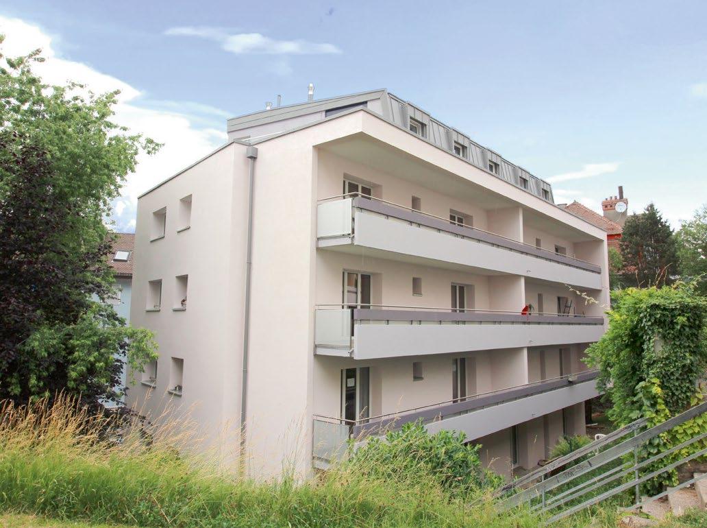 Borde 71, Lausanne: le bâtiment répondait aux exigences de la fin des années 1960. Les façades ont été isolées, du triple-vitrage a été installé et le toit a été équipé de panneaux solaires.