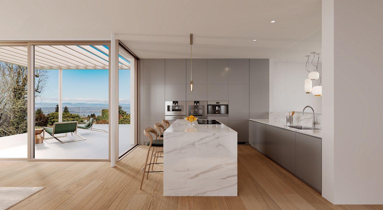 • L’unité principale répartie sur trois niveaux hors sol accueillera le futur propriétaire dans une ambiance contemporaine avec d’importants volumes auxquels s’ajoutent de belles terrasses et extérieurs verdoyants