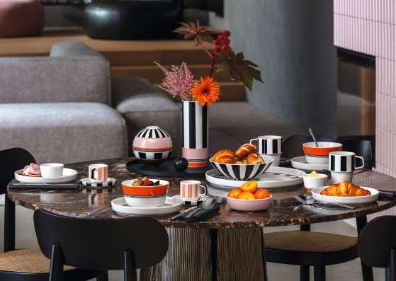 Villeroy& Boch erweitert diesesJahr «LaBoule Memphis» (siebenteiliges Set) und «Lapetite BouleMemphis» (fünfteiligesSnack-Set) um die umfassende Memphis Collection. Erhältlichsindvon Tellerninverschiedenen Grössen, Schüsseln, Snack-Schalen über Tassen und Vaseninsgesamt 14 spülmaschinentauglicheStücke, diemit ihrem farbenfrohen Design und ihren mutigen geometrischenMustern jedenTisch in einmodernesStillebenverwandeln.