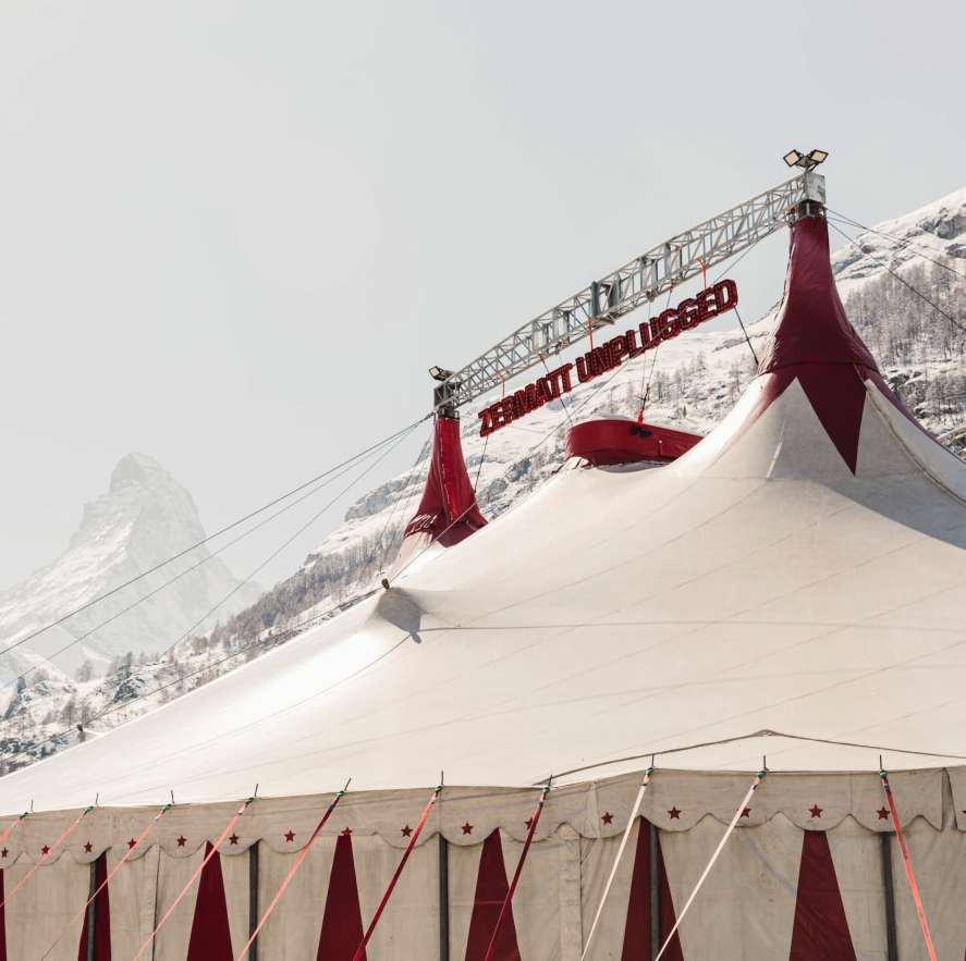 Nichtnur dieKünstlermachenZermatt Unpluggedbesonders,sondern auch dieOrte, an denensie spielen. DieBühnen-Bandbreite reicht vonder Berghütteüberdas Zirkuszelt bis hinzum Fünf-Sterne-Boutiquehotel. Manche sind nurmit Bergbahnen erreichbar.Sechs Bühnen,die zeigen,wie intensiv Musikwirkenkann, wenn derRahmenstimmt.