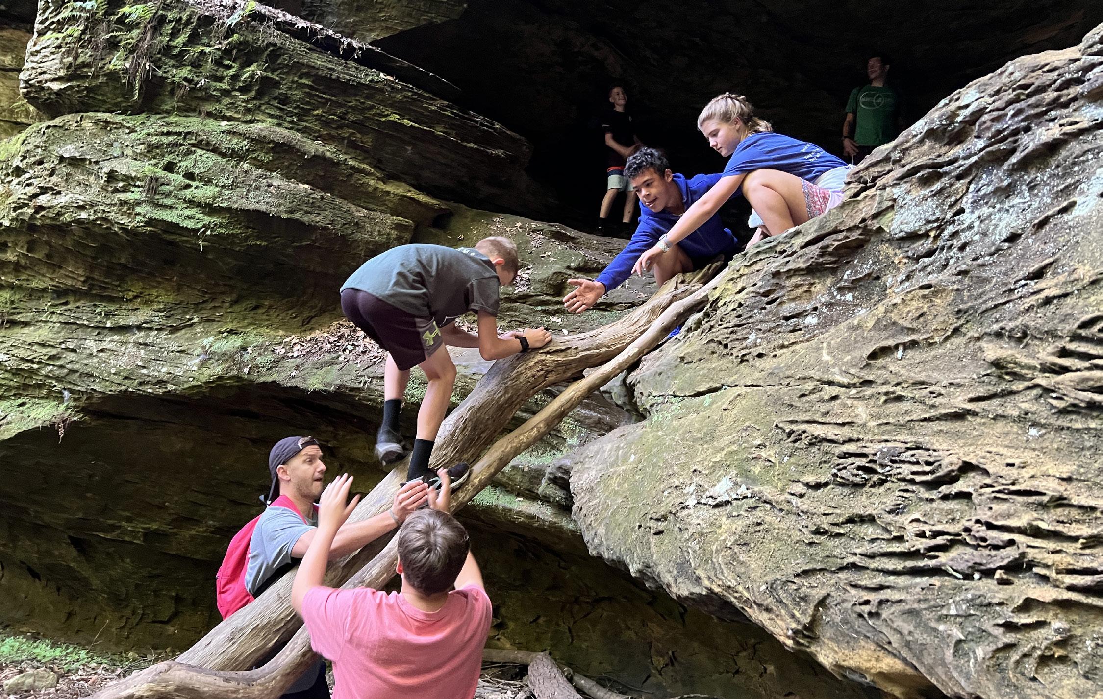 Oak Farm Montessori High School (OFMHS) provides many opportunities for students to interact with each other both in and out of the classroom. In class, students work together on projects and experiments, helping and learning from each other. They also work together to take care of their environment, completing chores each day. They work on their communication skills as they delegate tasks in their group and make sure each member is contributing what is needed. Outside of the classroom, students bond together on their Fall Camping trip, intersessions, and other outside opportunities. They depend on each other and give each other support as they complete adventurous activities and take care of themselves, whether that means putting up their own tent or cooking their own dinner. OFMHS also hosts game nights and dances to give students the opportunity to interact in a purely fun and social manner.